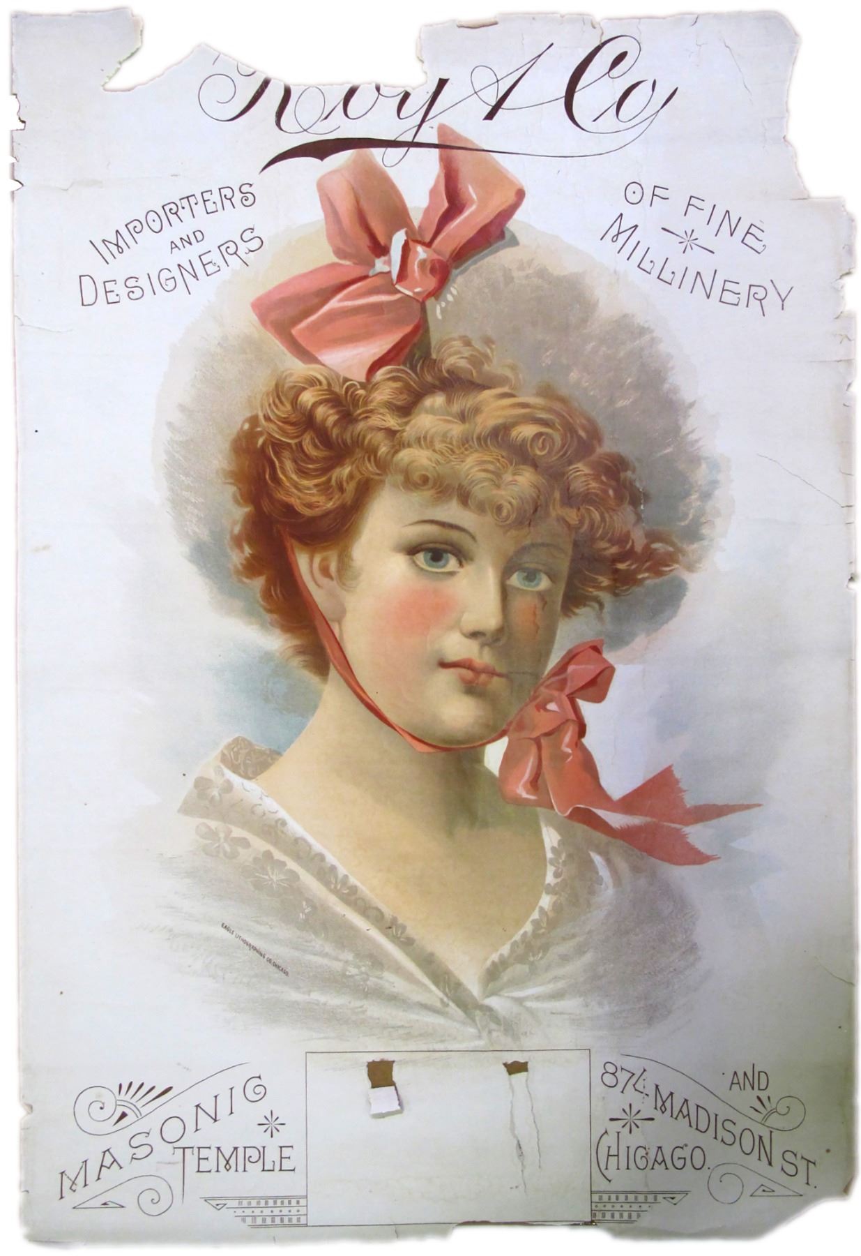Roy and Co. Importers and Designers of Fine Millinery // Masonic Temple, 874 Madison St, Chicago. Small calendar missing. Poor condition, sold as is. State: Illinois City: Chicago Date: c1880-1890 HWAC# 85160