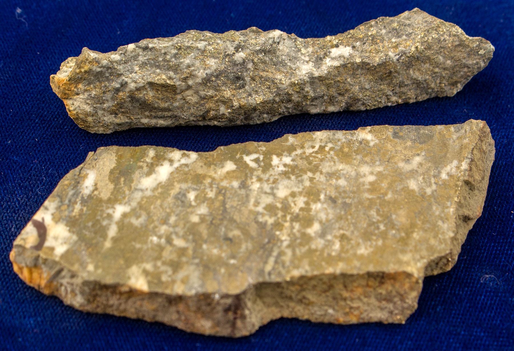Lot of 2. 1) 1/4 x 3 1/2 x 1 1/2". 2.44 ounces. 2) 3/4 x 3 1/2 x 3/4". 1.44 ounces. Contains silver, gold, and massive sulfides. The Victorine Mine is located in Kingston Canyon. Kingston offered a level area for building mills and houses so a town site was platted in 1864. It had major periods of production in the 1860’s, 1880’s, and 1900’s. There are extensive remains at Kingston with the mill ruins alone making this a worthwhile trip. Kingston is about 25 miles southeast of Austin (by road). City: Kingston, Lander State: Nevada Date: HWAC# 99743