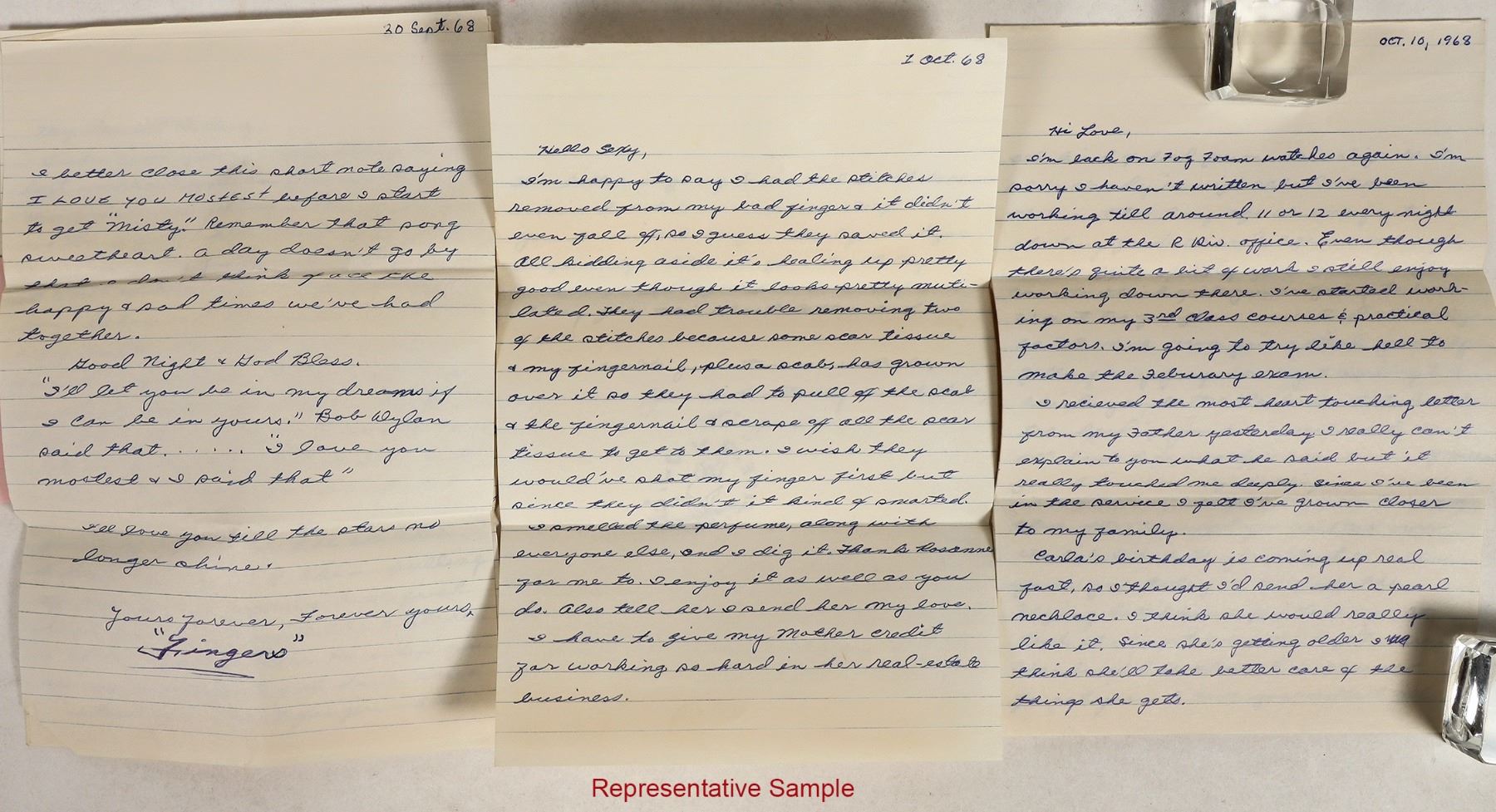 Over 250 letters postmarked between 1968 -70 between Marc E. Lenci aboard the U.S.S. Hancock CVA-19 and his wife Glenda. Personal correspondence about the daily life between them, updates on family and love letters.