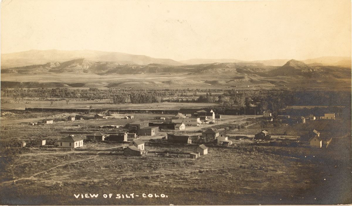 An old Postcard (c. early 1900s) showing a birds eye view of the town of Silt, Colorado Includes a Silt post mark on a one cent stamp. (Prag Collection). City: Silt State: Colorado Date: ID# 32353