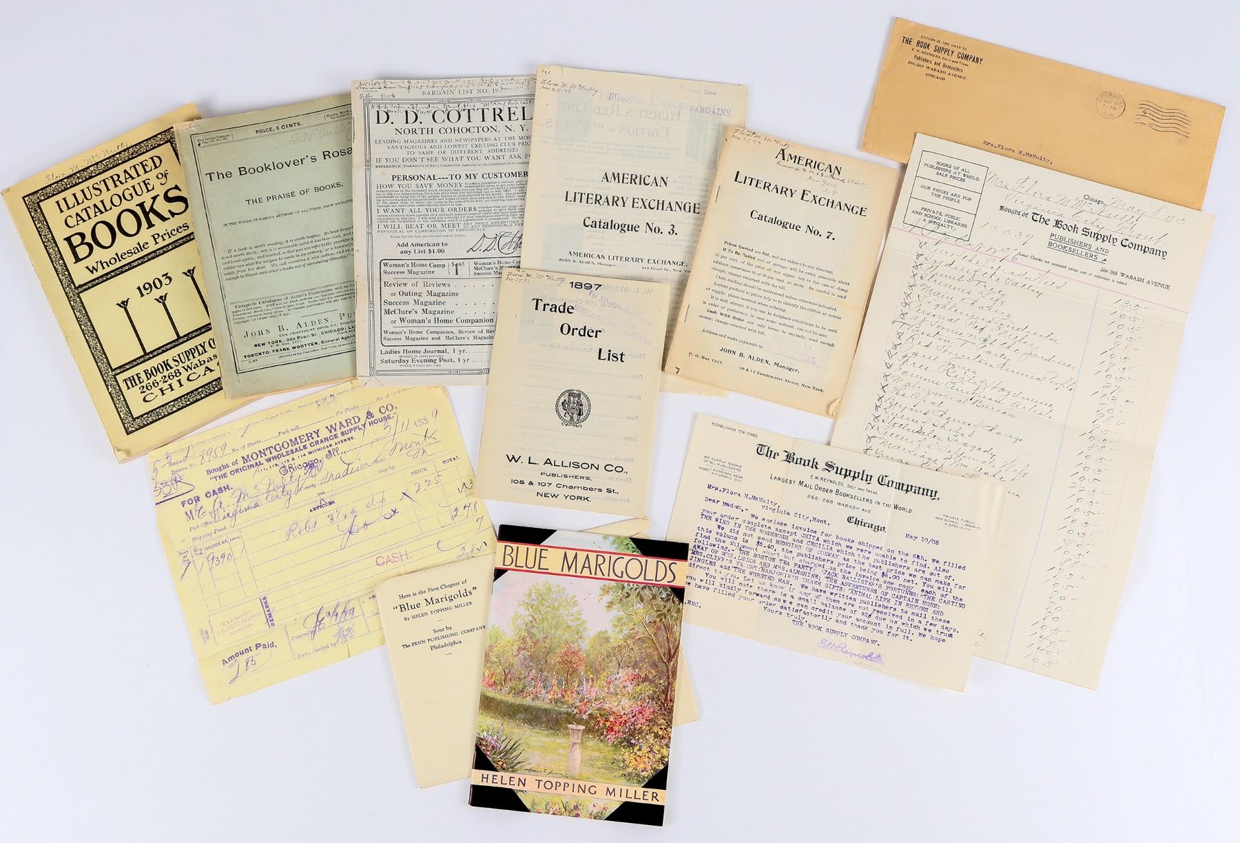 6 c. 1890's to 1903 book and magazine catalogs(all have some cover writing) and related ephemera. D D Cottrell. 2x American Literary Exchange. WL Allison. The Booklover's Rosary. Illustrated Catalog of Books,1903.