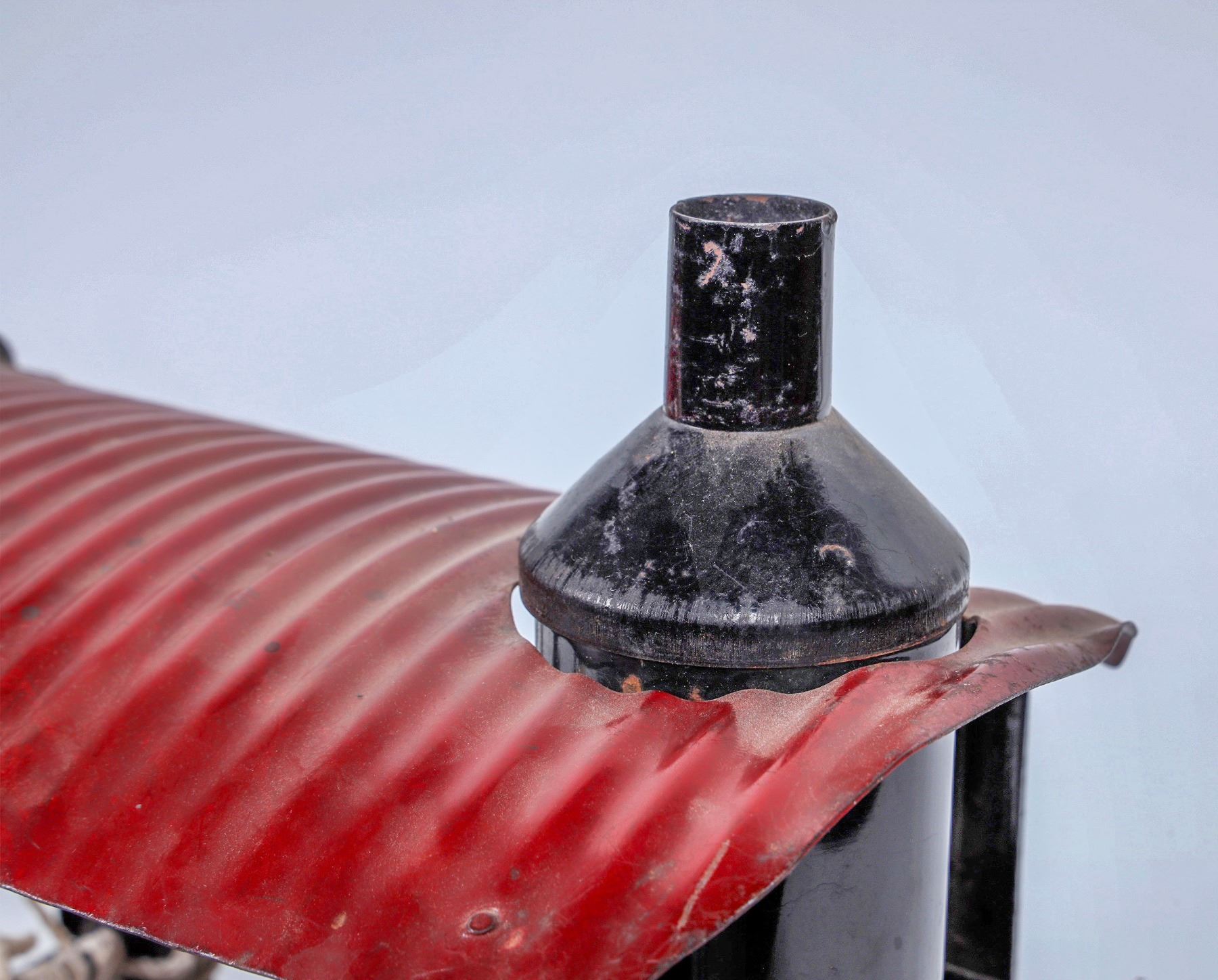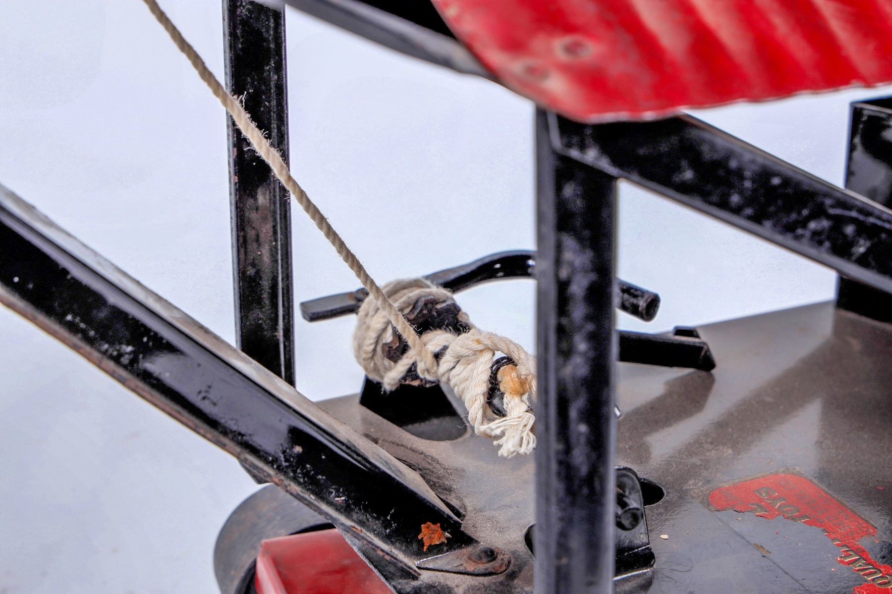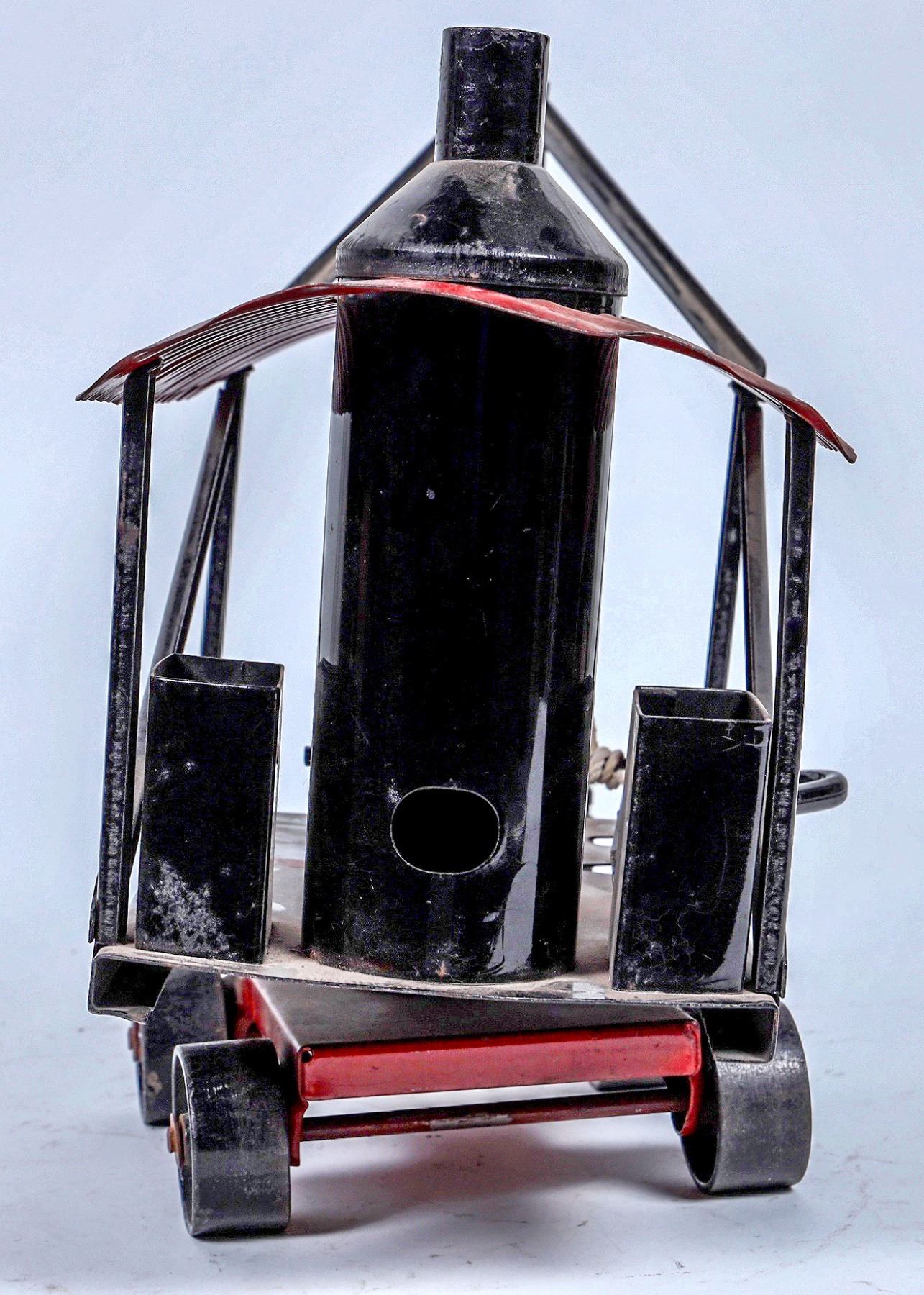 Buddy L Steam Shovel. Pressed Steel. Shows Play Wear. Graphics are Worn. Operable. Color: Red/Black . Good Condition. 22x15." 26” with shovel extended