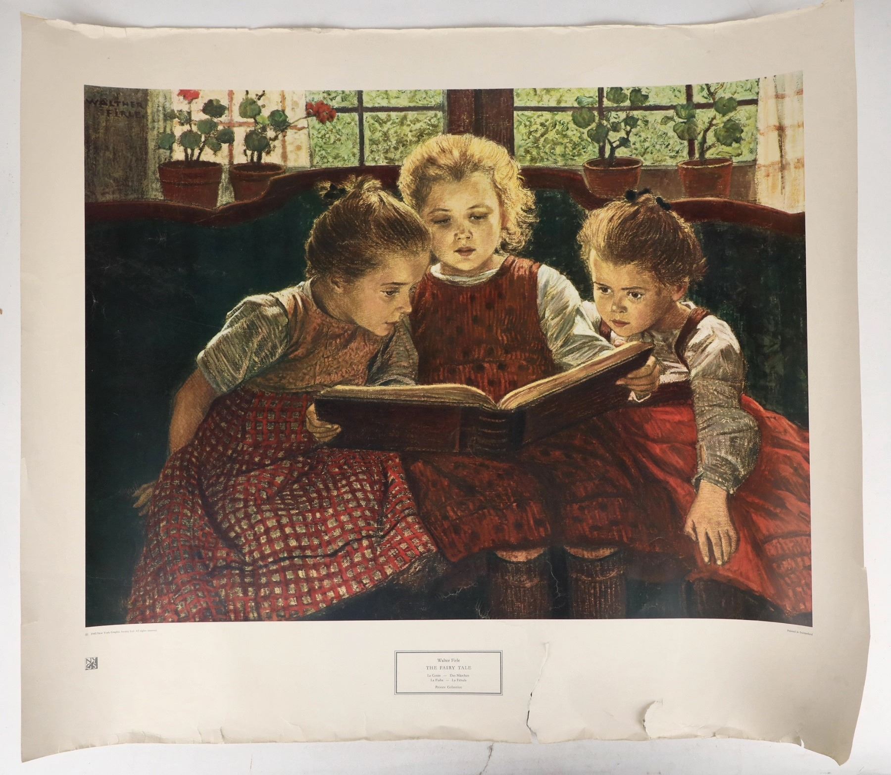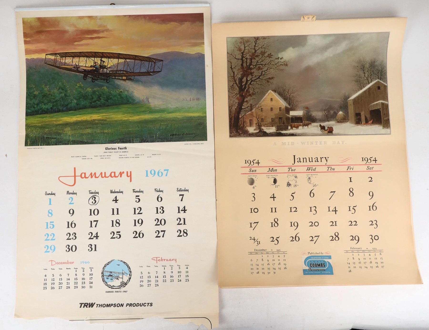 Two vintage calendars: 1954 Dorth Coombs Insurance, Wichita; 1967 Thompson Products. Color art print (27 x 24 inches) "The Fairy Tale" by Walter Fitle. Some tears around the edges, could be trimmed and framed.