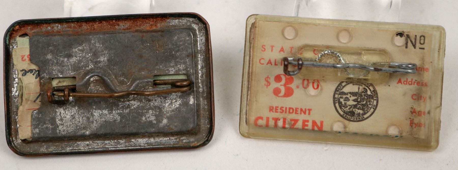 Remember when a California fishing license was $3? Two fishing licenses for California citizens in 1951 & 1954; folded into 2 x 1 1/2 inch pinback badges.