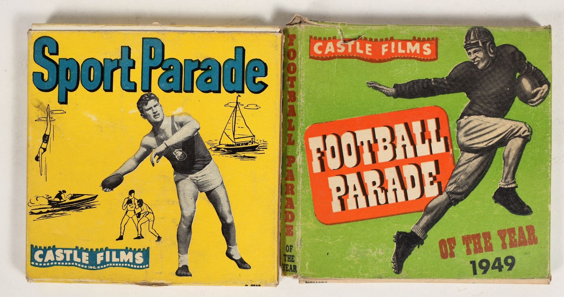 Lot of 2. 8mm films. "Football Parade of the Year-1949" and "Sports Thrill of the Year-1949." In original boxes. Appear in good condition. .