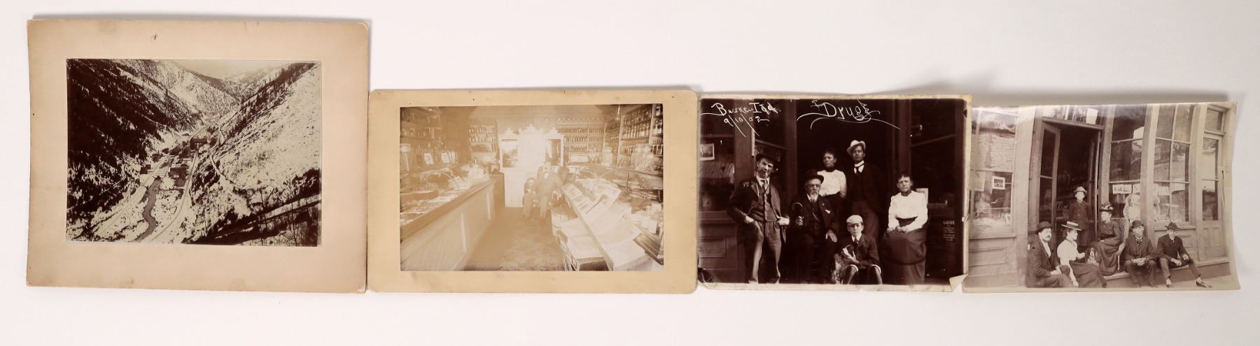 Three vintage photos from 1800s Idaho. One measures 5"x 7", another, 7"x 9".There is also a 5.5"x 8.5" stamped T.N. Barnard.