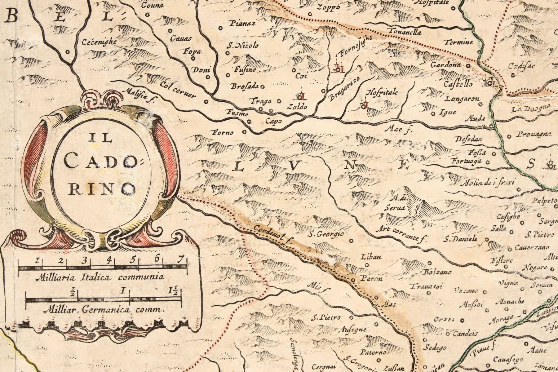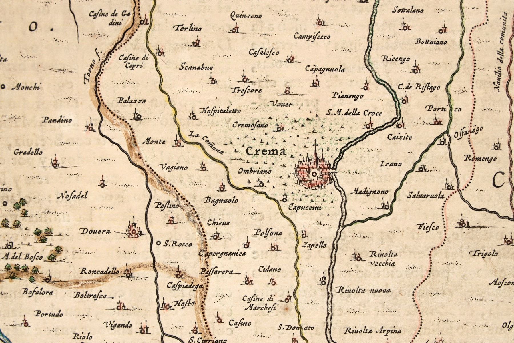 Vintage map of Italy , The Territory of Cremasco, 1652. 17 x 21.5". Story on back . Copperplate, hand colored. Has several repairs on back.