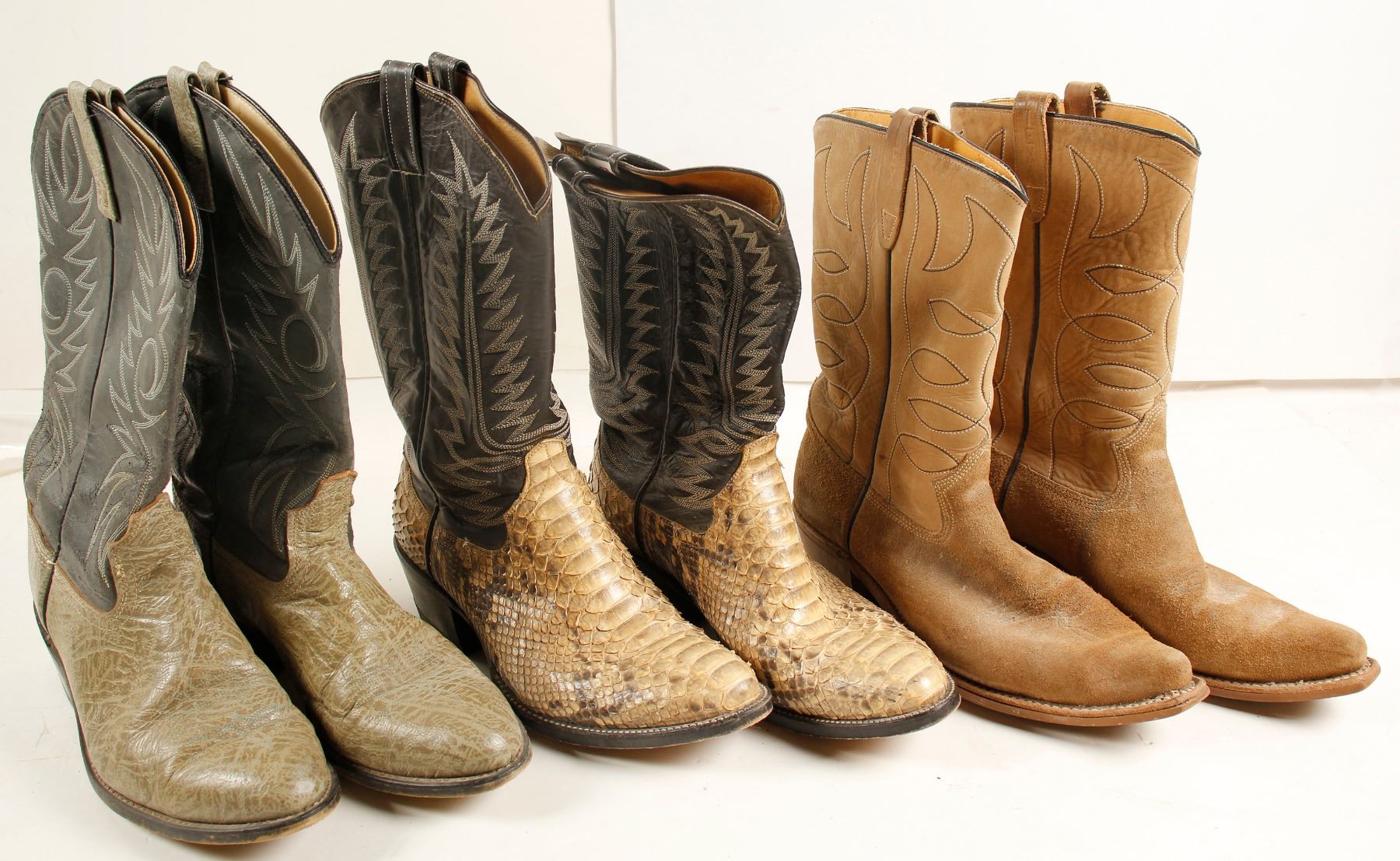 Brown Texas size 10E, Cowtown black/snake size 10E, gray/lizard? size 10E no maker