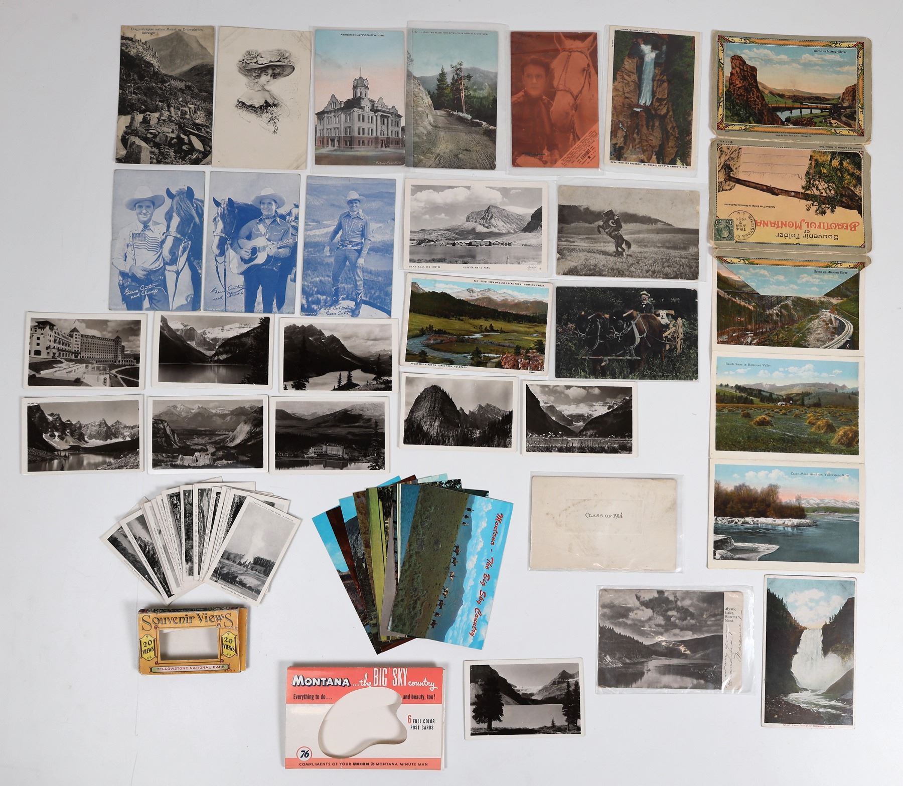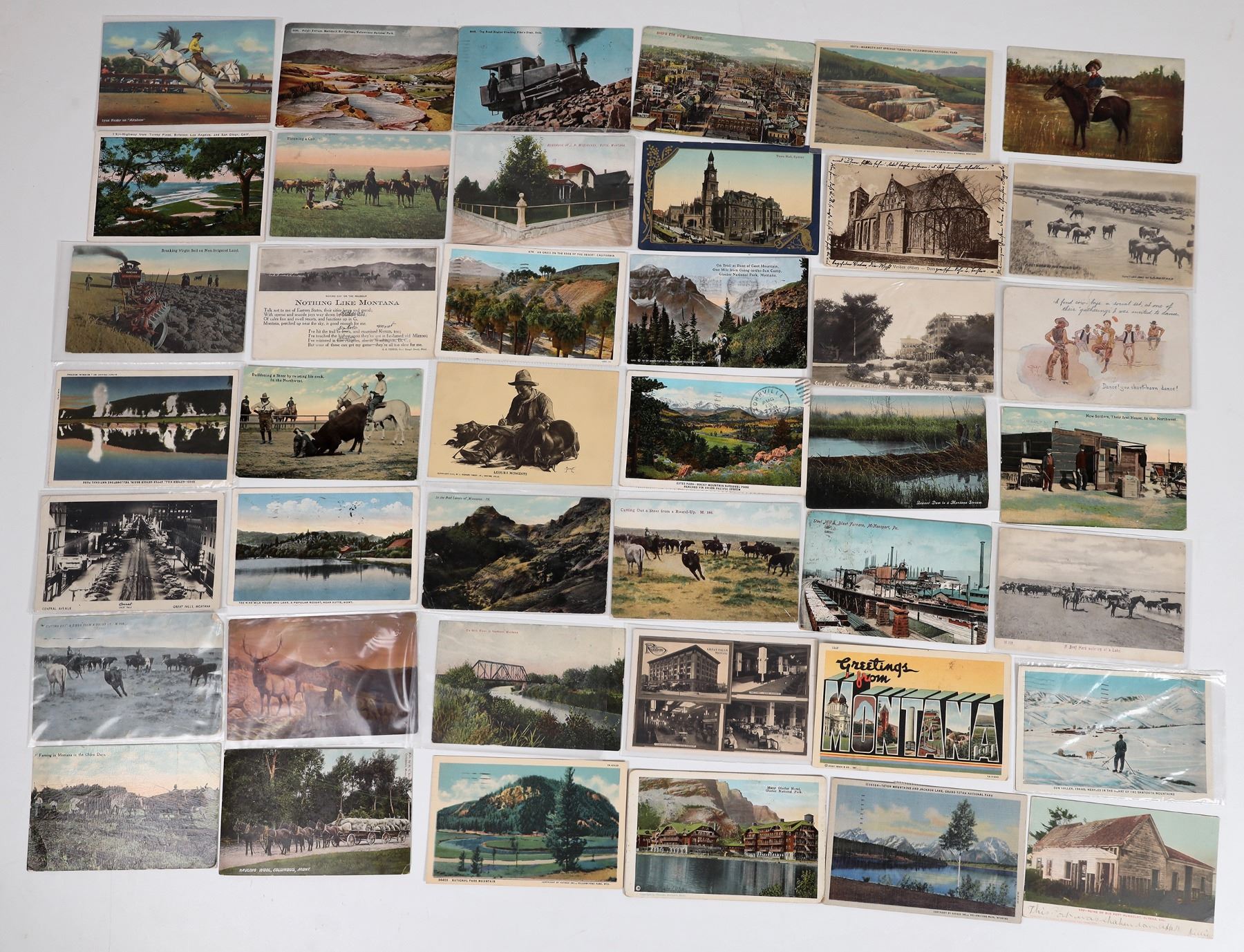 Group of about 75 vintage postcards, mostly from Montana. A lot of these Montana postcards are cowboy themed. Others have scenic views of Montana, including ones from Glacier and Yellowstone National Parks. Also, some street views of Montana cities. Good condition.