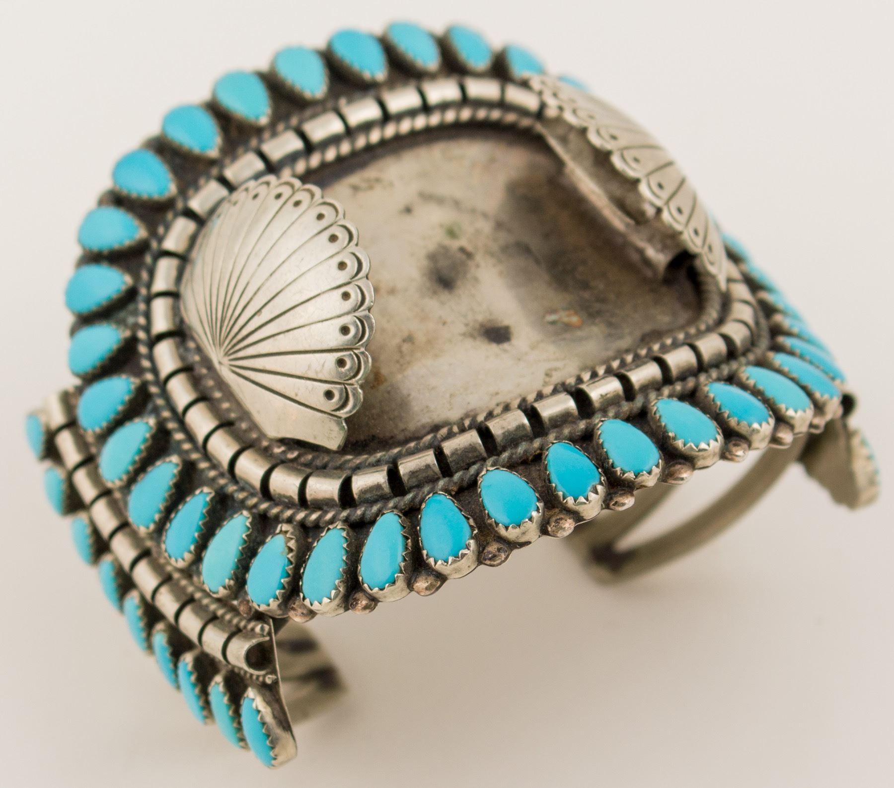 Turquoise Petit Point watch bracelet. Navajo made, no signature. 5-7/8" inside measurement. Old silver and turquoise in very good condition. State:Arizona/New Mexico City: Date: ID# 40612
