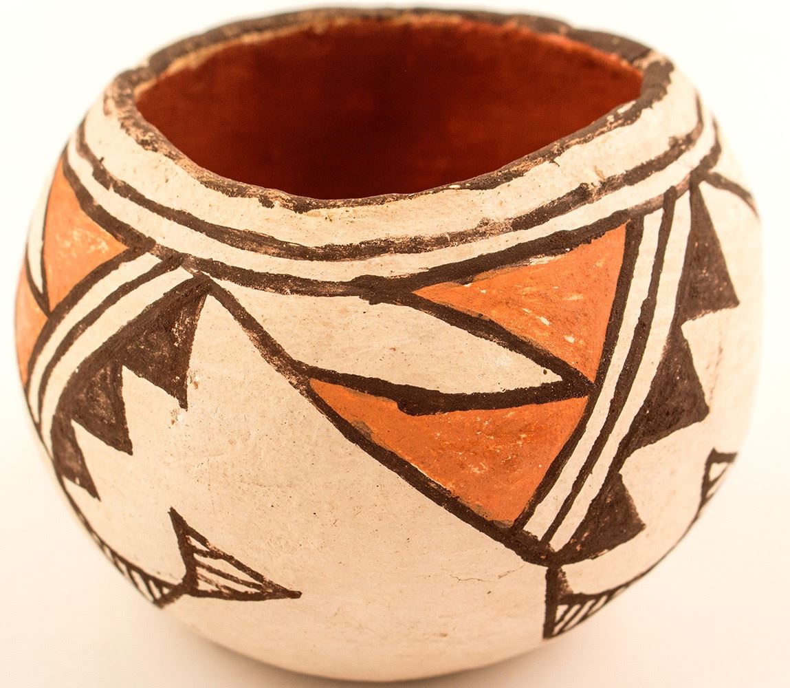 Vintage Old Laguna pot, traditional design. Unsigned, 3.5" h x 3.5" diameter. Date: c.1935 Location: Laguna Pueblo, New Mexico HWAC # 52748