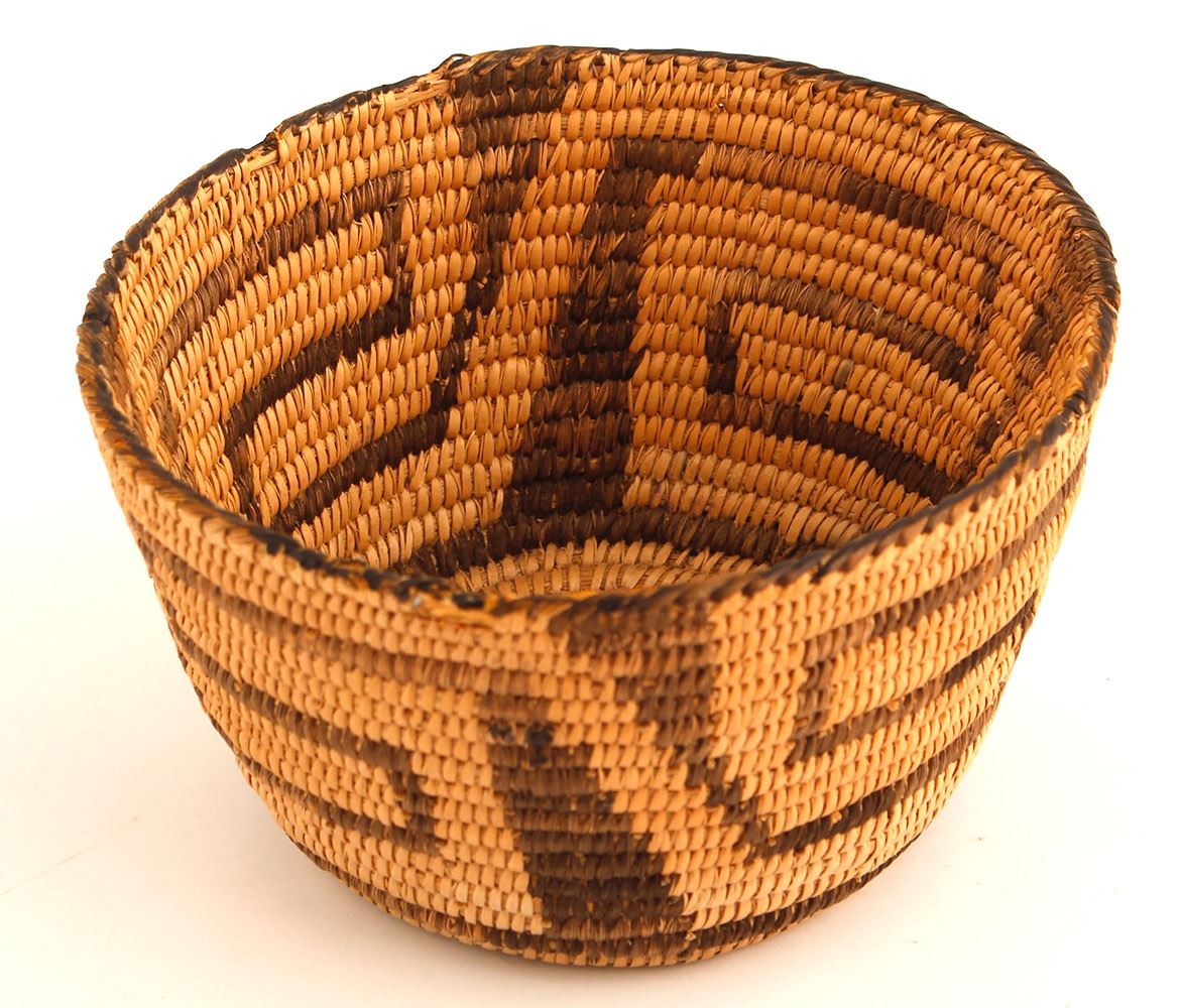 Vintage Pima maze design basket. 2.75" h x 5" diameter. Very good condition, tiny rim damage. Date: c.1900's Location: Arizona HWAC # 52149