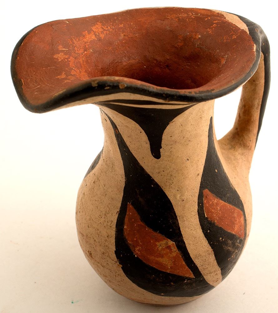 Vintage Santo Domingo pottery pitcher. Flora design is typical of Santo Domingo pottery of this age. 4.75" h x 4." w. Good condition State:New Mexico City:Santo Domingo Pueblo Date:c.1920's-30's ID# 49745