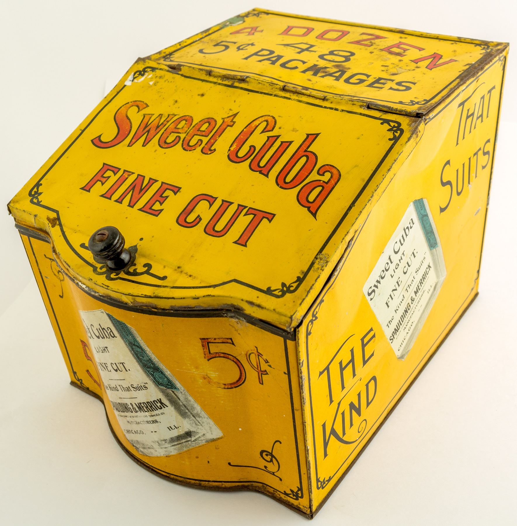 Vintage Sweet Cuba Tin Box with hinged lid and knurled nob. Box has some condition issues. State: City: HWAC#: 48331 Date:
