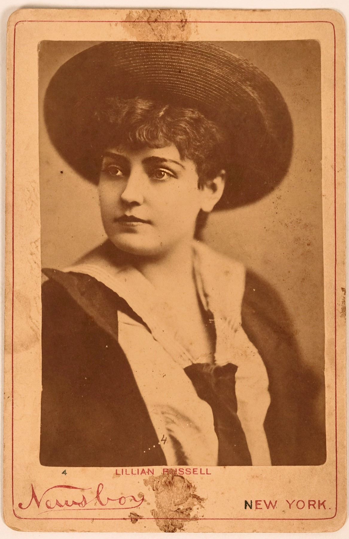 Vintage Vaudeville Lillian Russell Cabinet Photo Card, 1861--1922; Born Helen Louise Leonard in Clinton, Iowa, US. Lillian Russell was an American singer and actress famous for her flamboyant lifestyle. Photo is a bit dirty on the edge, but photo is intact.