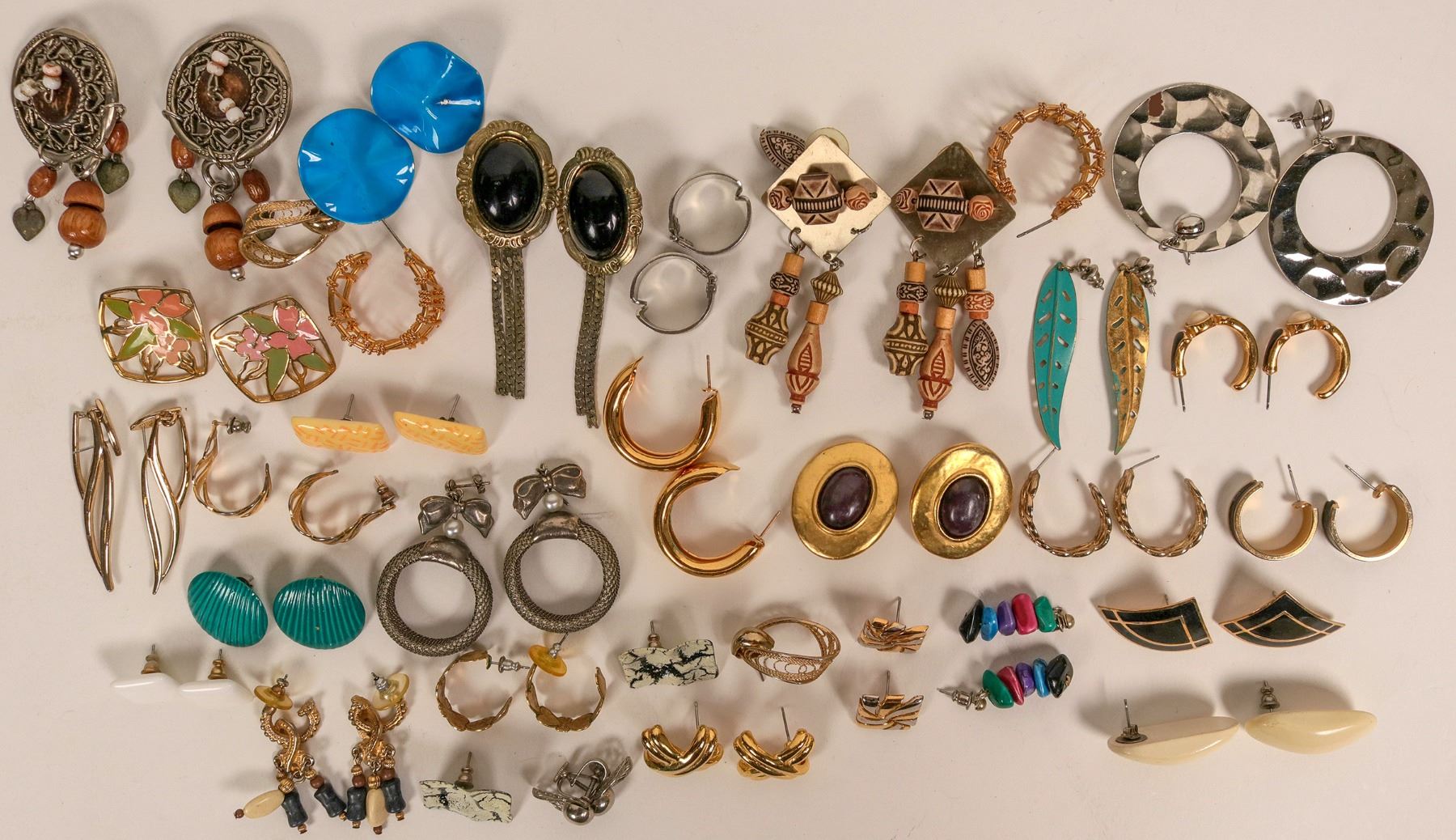 An assortment of about 32 pairs of earrings. Refer to photo