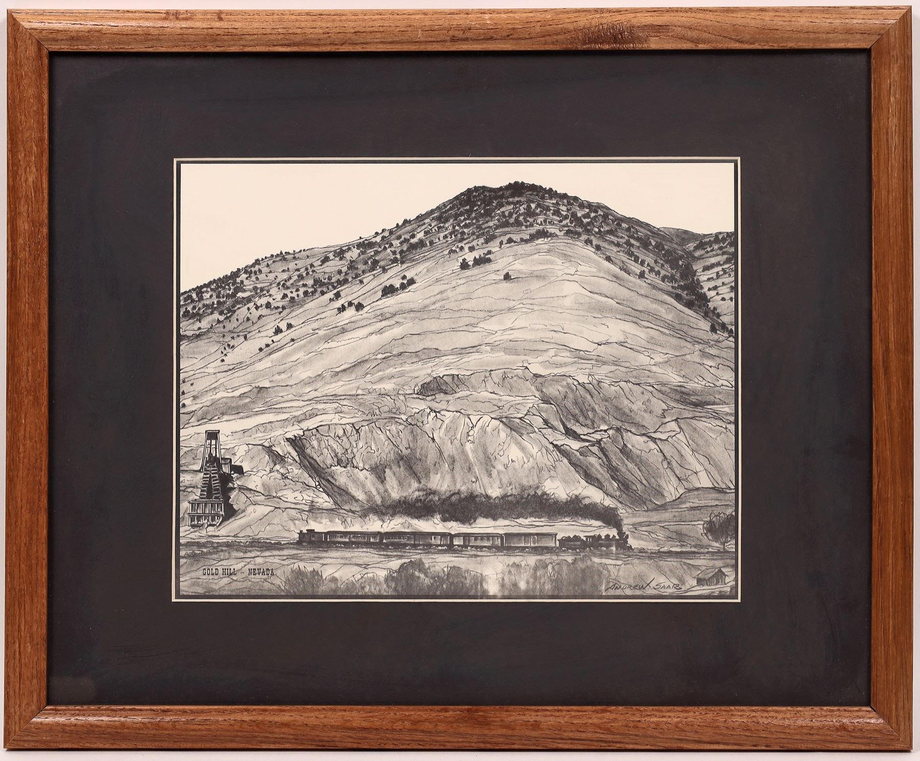 6 framed train prints at Virginia City and Gold Hill by Andrew Saar. Frame 17.25x20.5, print 10.5x13". City: State:Nevada Date: