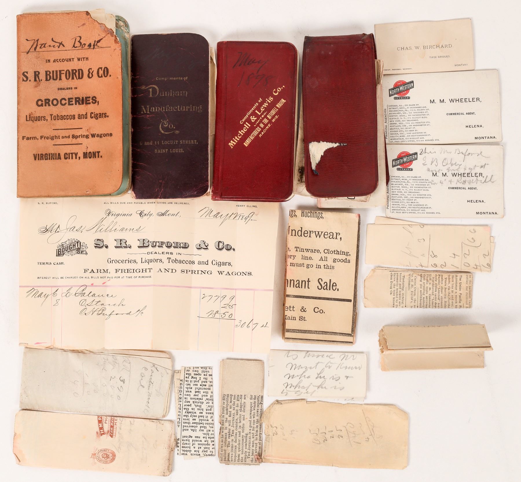 Notebooks, business cards and a freight receipt from Virginia City, Montana. Curious lot. Please see photos for more details. Montana Virginia City 1800s-1900s