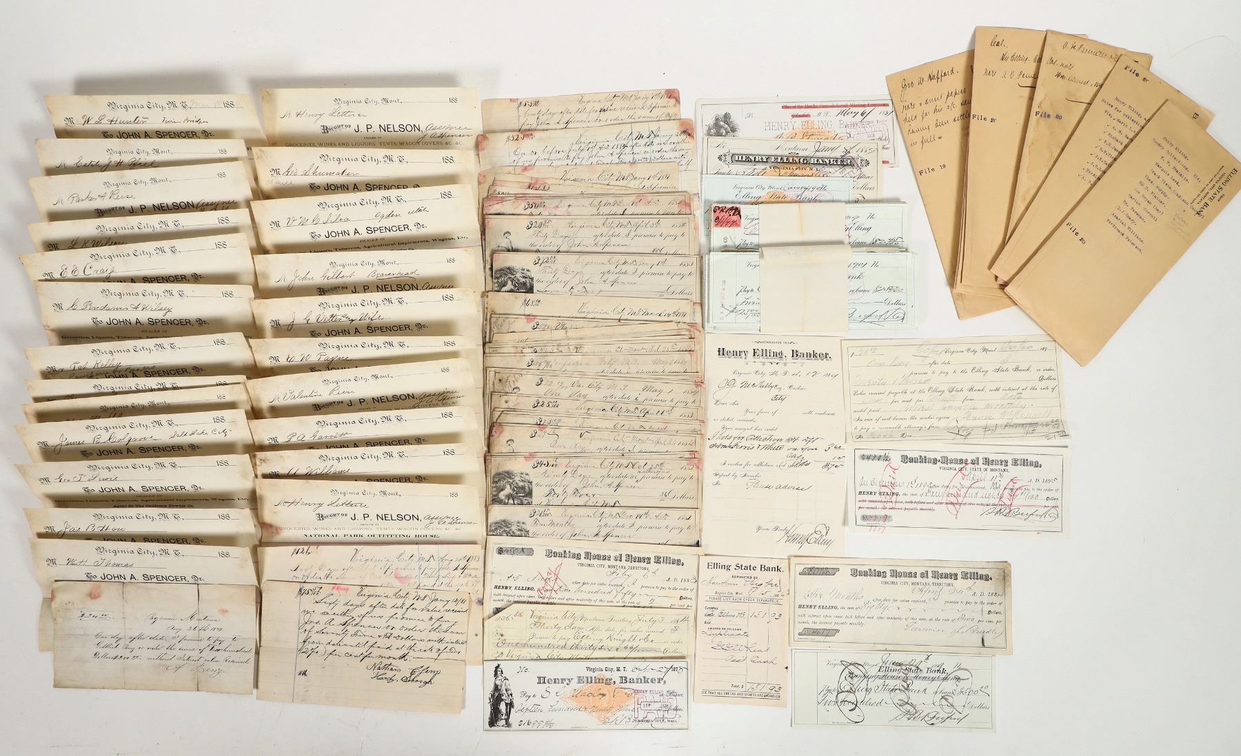 Over 50 items. Collection of checks, promises to pay, loans, Mortgages and notes. Ellis State Bank, Henry Elling Bank. All in good readable condition.