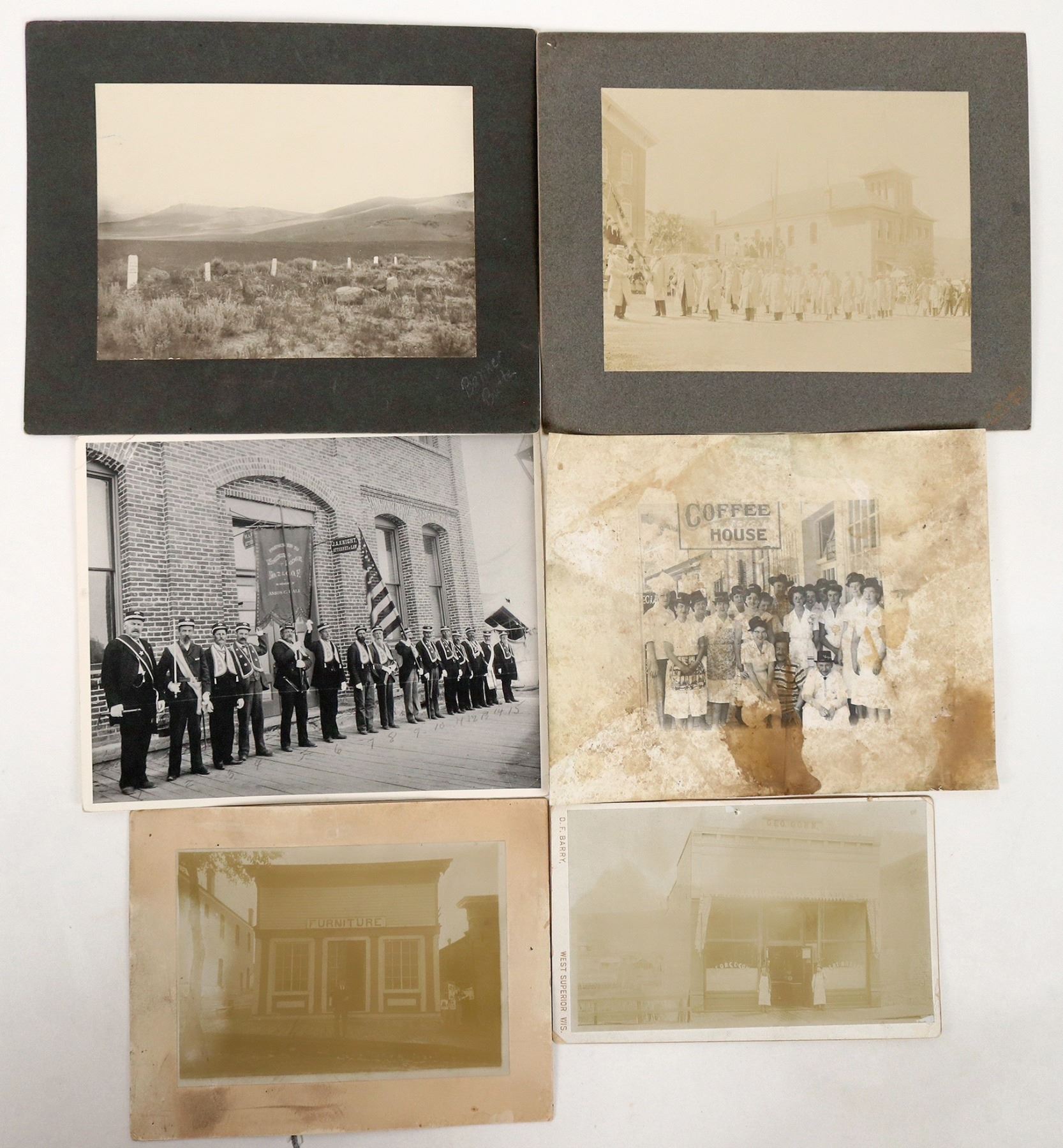 6 mostly Virginia City photos, 4.75-8" to 6x8". Metropolitan Market-low contrast, Butte graveyard, Coffee House-heavy stain, parade-low contrast, furniture store-low contrast, IOOF, Virginia City.