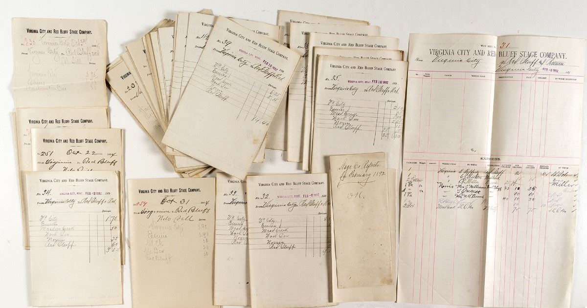 Fabulous lot of nearly 40 pieces. Includes two Agents Monthly Statements (1892) and then the rest are stage way bills from 1892 and 1894. Way bills are 17” x 11” and list driver, passengers and packages. These deserve a closer look by Montana historians and collectors. City: Virginia City State: Montana Date: 1892 HWAC# 34750