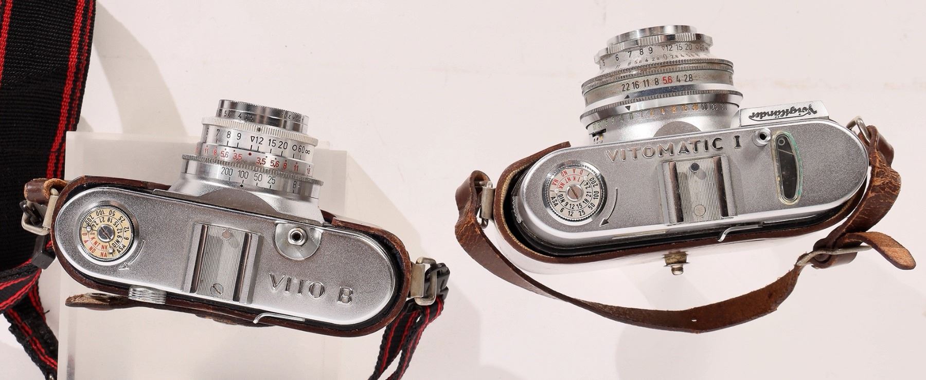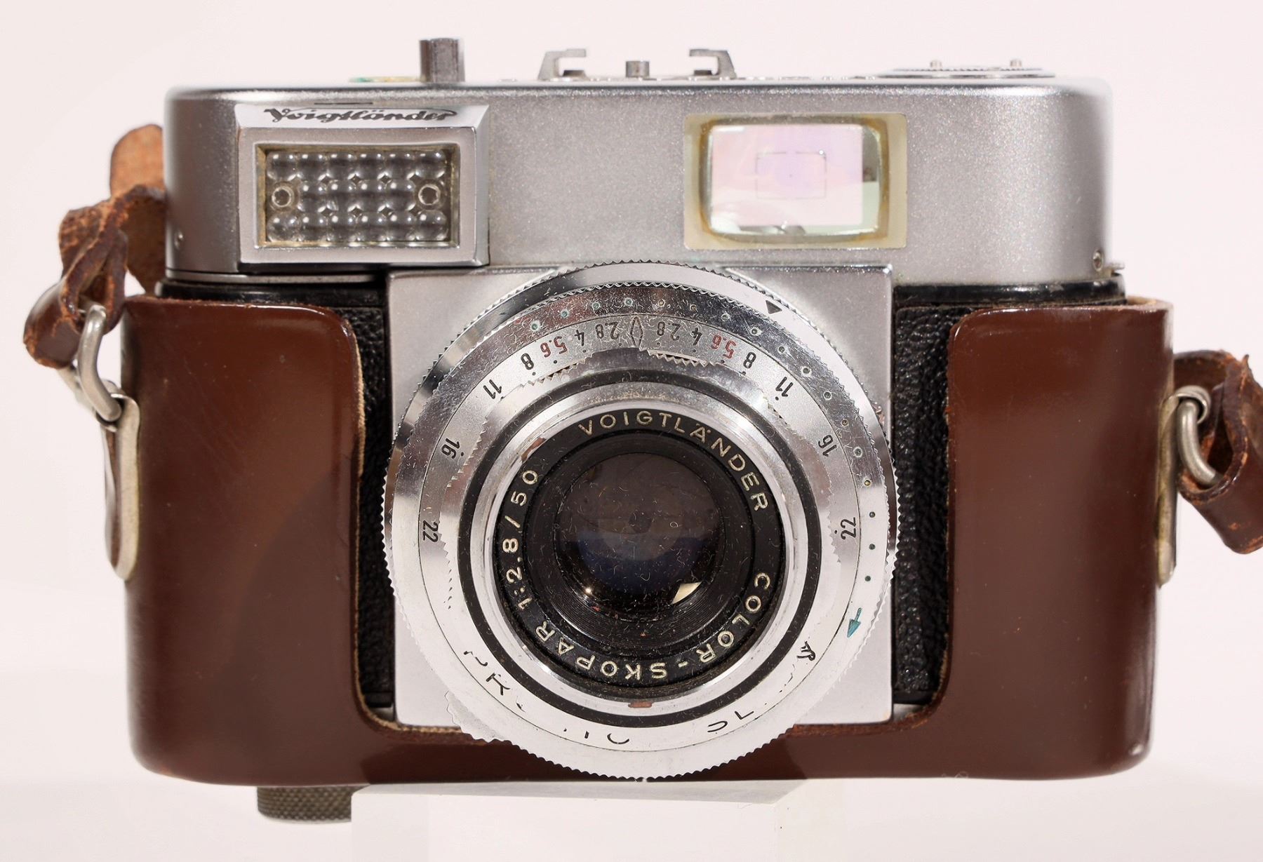 Vitomatic 1, color skopar, 2.8/50. Appears about new. dark leather case. No guarantee on working condition.