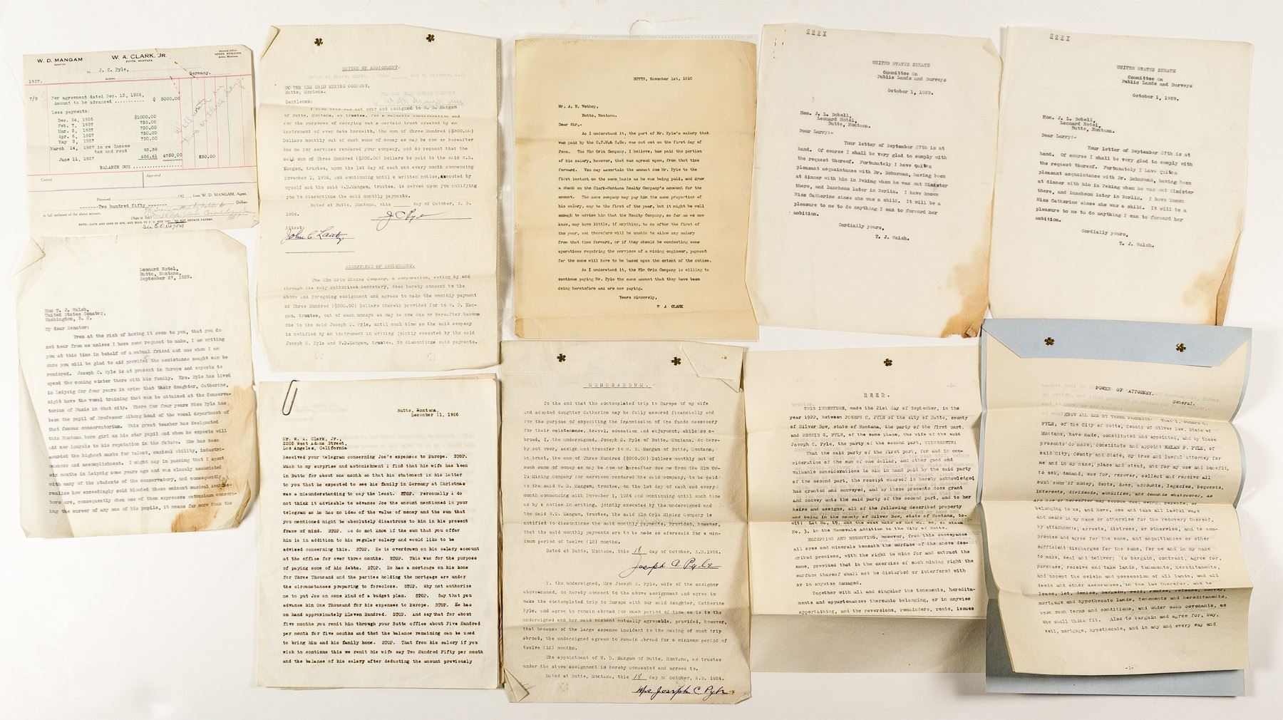 17 Pieces of ephemera from Senator W.A. Clark and also prominent Montana Mining figure Joseph C. Pyle. Items include Deeds, Western Union messages, Notice of Assignment, letters, and more. 2 Senators, no signatures from them. State: Montana City: HWAC#: 40835 Date: