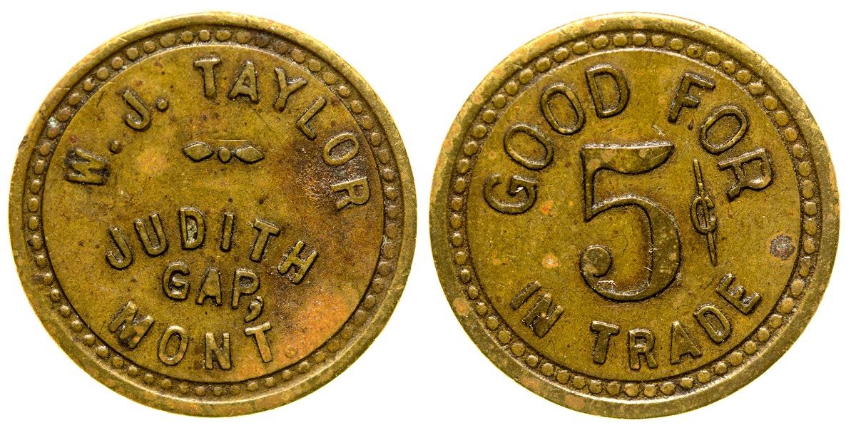 W J Taylor / Judith / Gap / Mont.// GF / 5c / IT. R-8 (Svoboda Collection) City: Judith Gap State: Montana Date: HWAC# 35968