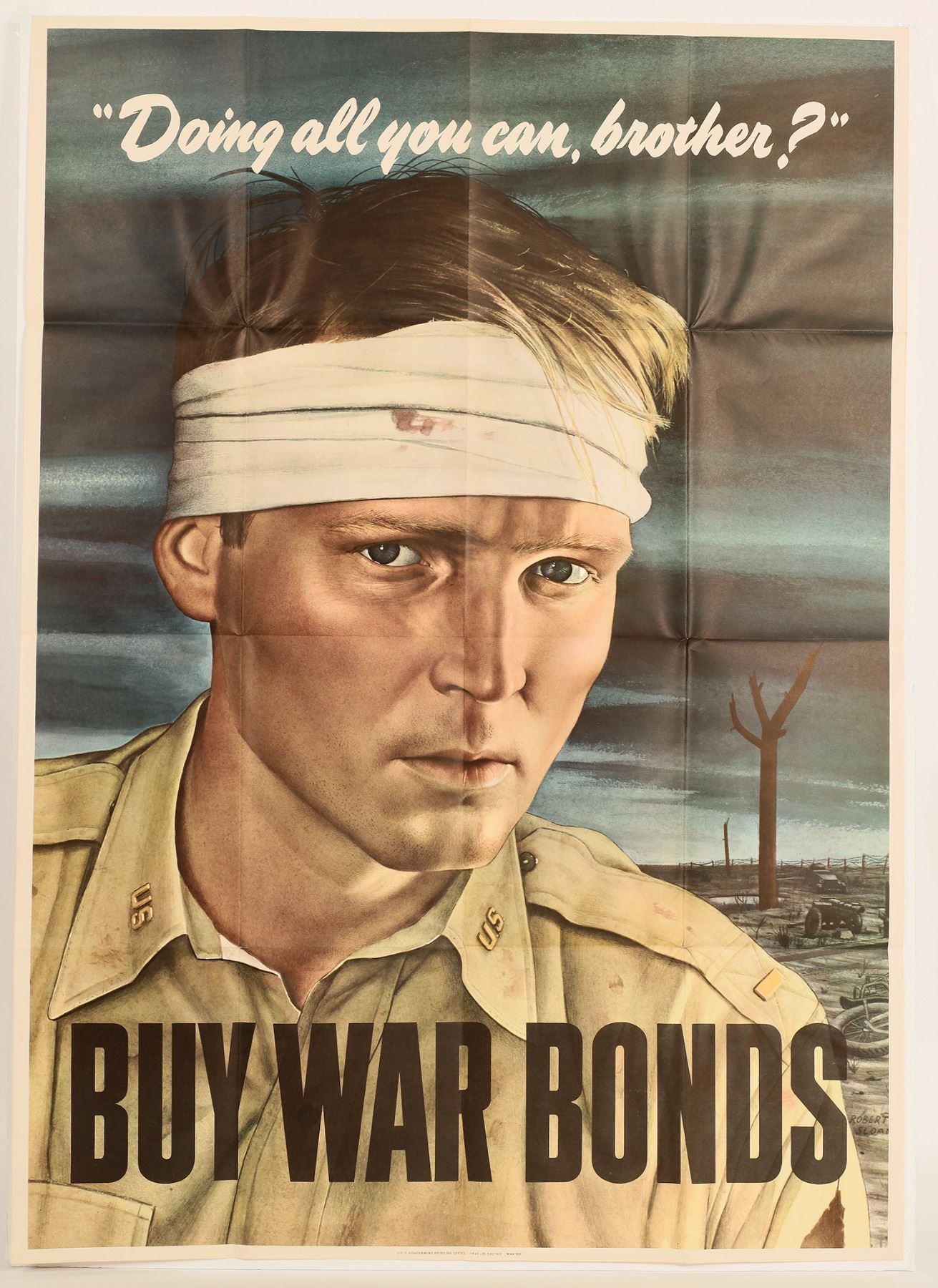 Original "Doing all you can, brother?/ BUY WAR BONDS" WW2 poster with head bandaged soldier. Nice condition, 40x28".