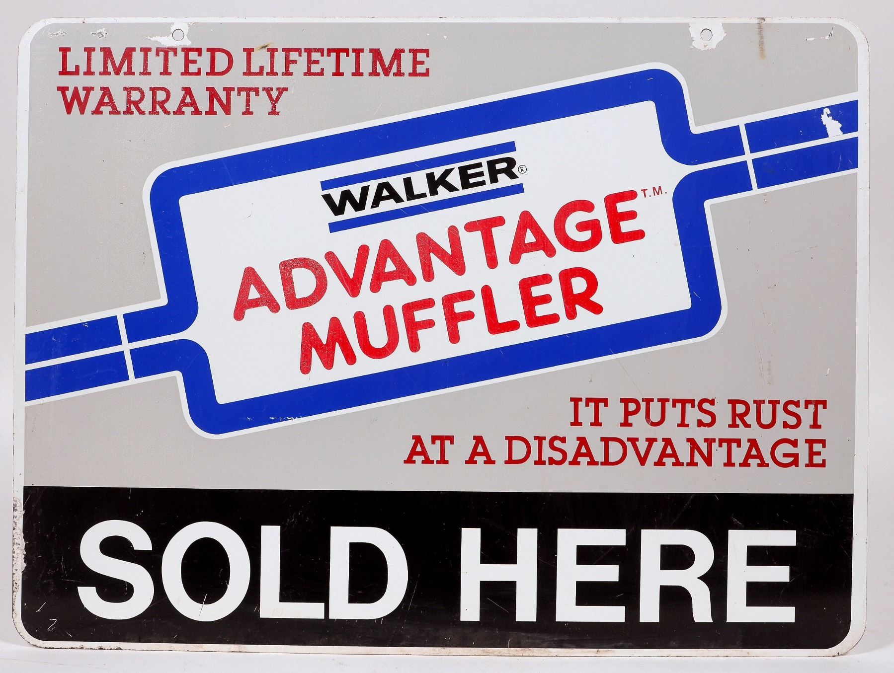 2 sided Walker Advantage Muffler metal sign. c. 1970's-80's. 18x24". Very little rust.