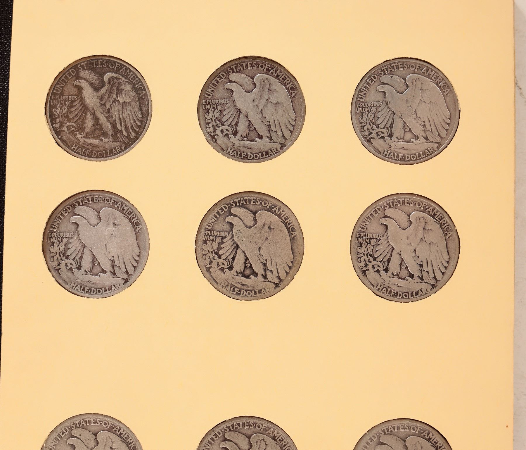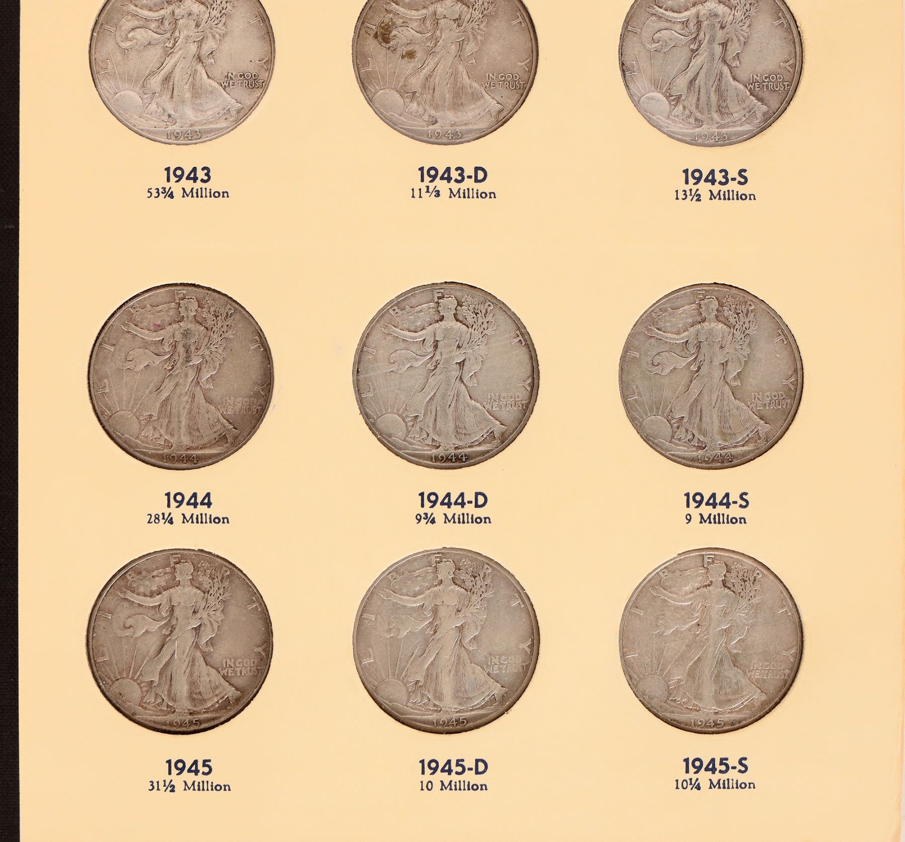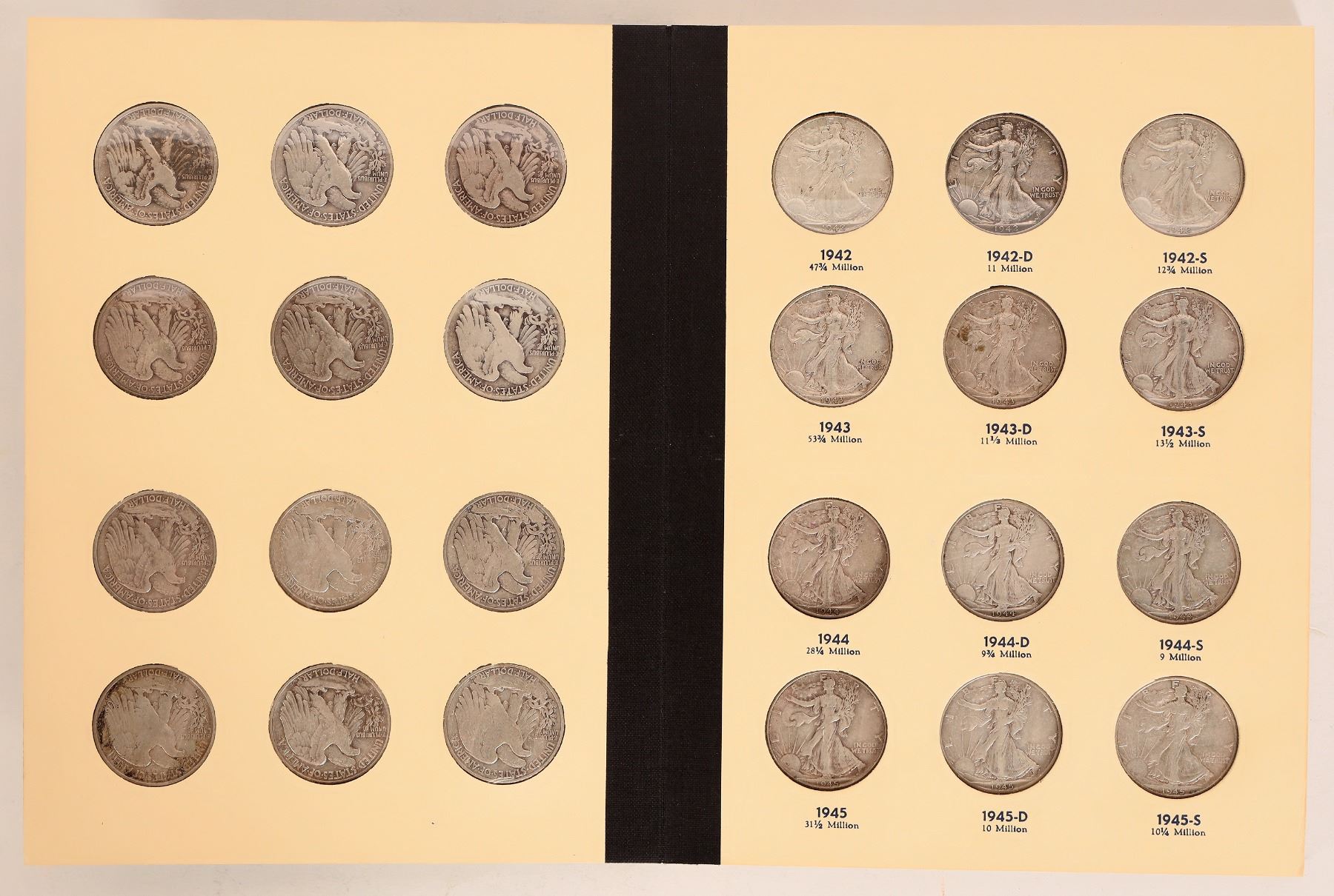 Two Library of Coins vintage coin albums, copyright 1959: Liberty Walking Half Dollars Part 1 1916-1937 Vol. 19 & Liberty Walking Half Dollars Part 2 1937 - 1947 Vol. 20. Total of 65 coins. Complete set including the 1916-S and 1921-D. Coins are nice condition, AG-EF condition.