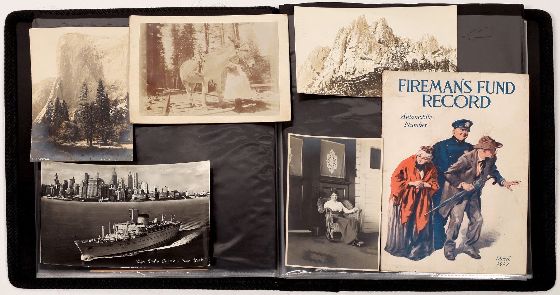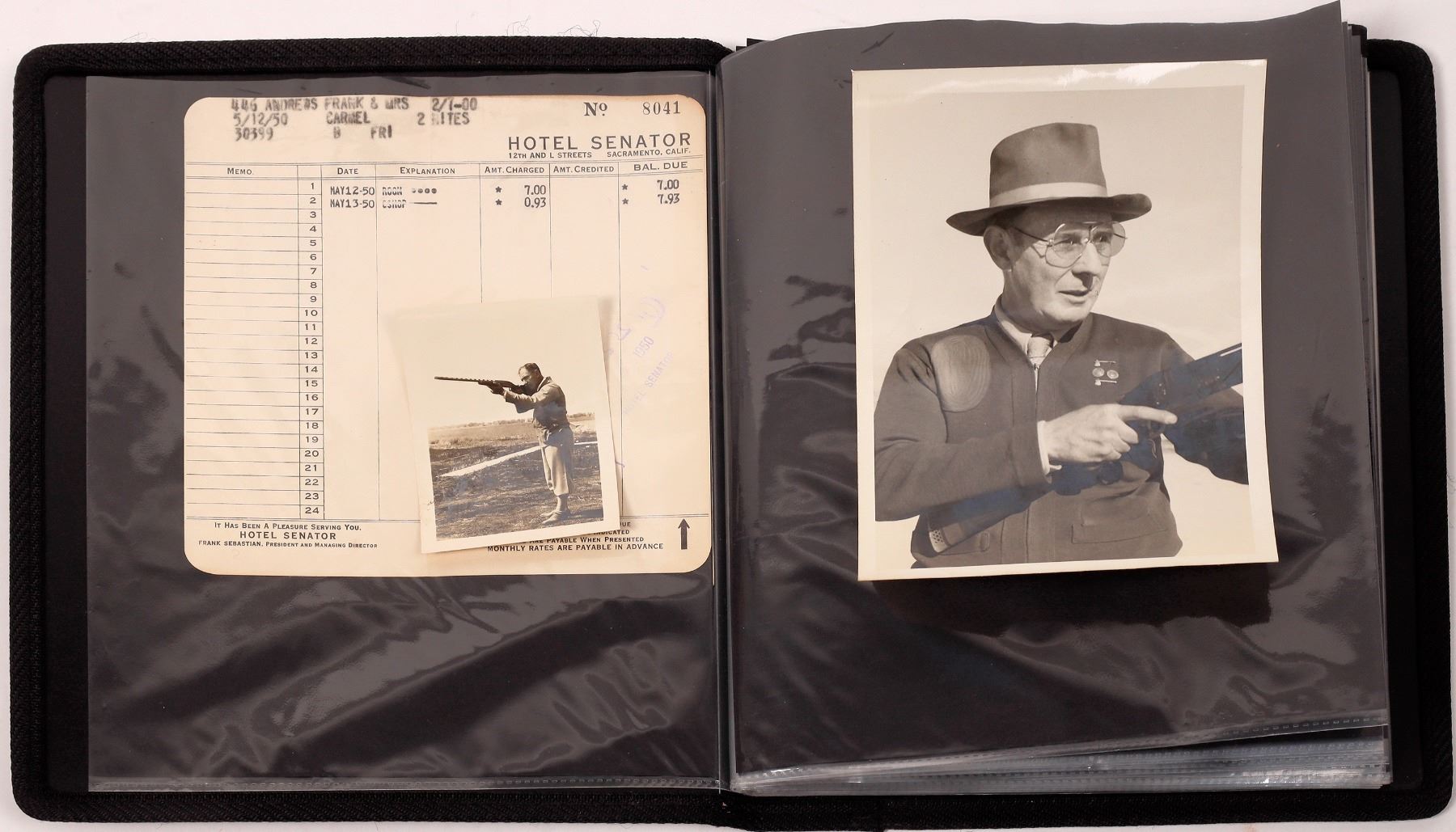 Album contains a collection trap shooters ephemera: hand painted postcards to Frank Andrews, photos, brochures, Calif. Indians Trapshooters club books. Walter Palmer family photos, reunion info for 1882 and other photos. California 1880-1930's