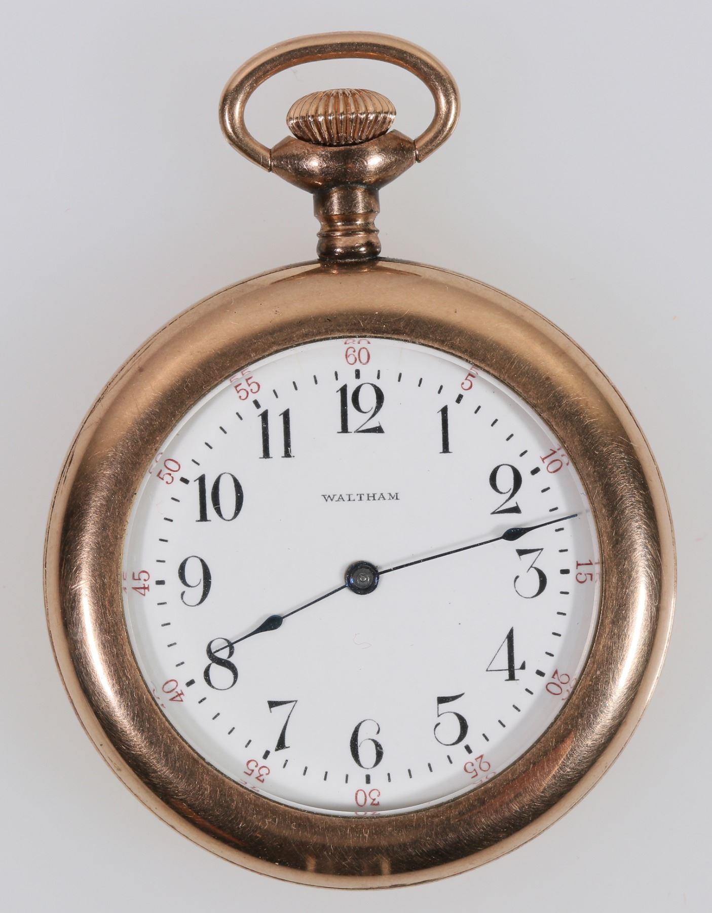 Waltham 18k 7 jewel Gold Antique Pocket Watch. Does not wind or tick. 3/4 bridge movement. Case tests 14-18k gold. Large. Case made by Provedence Watch Co. #12 size. Stem set. sleeve. Beautiful condition. 57.4 grams.