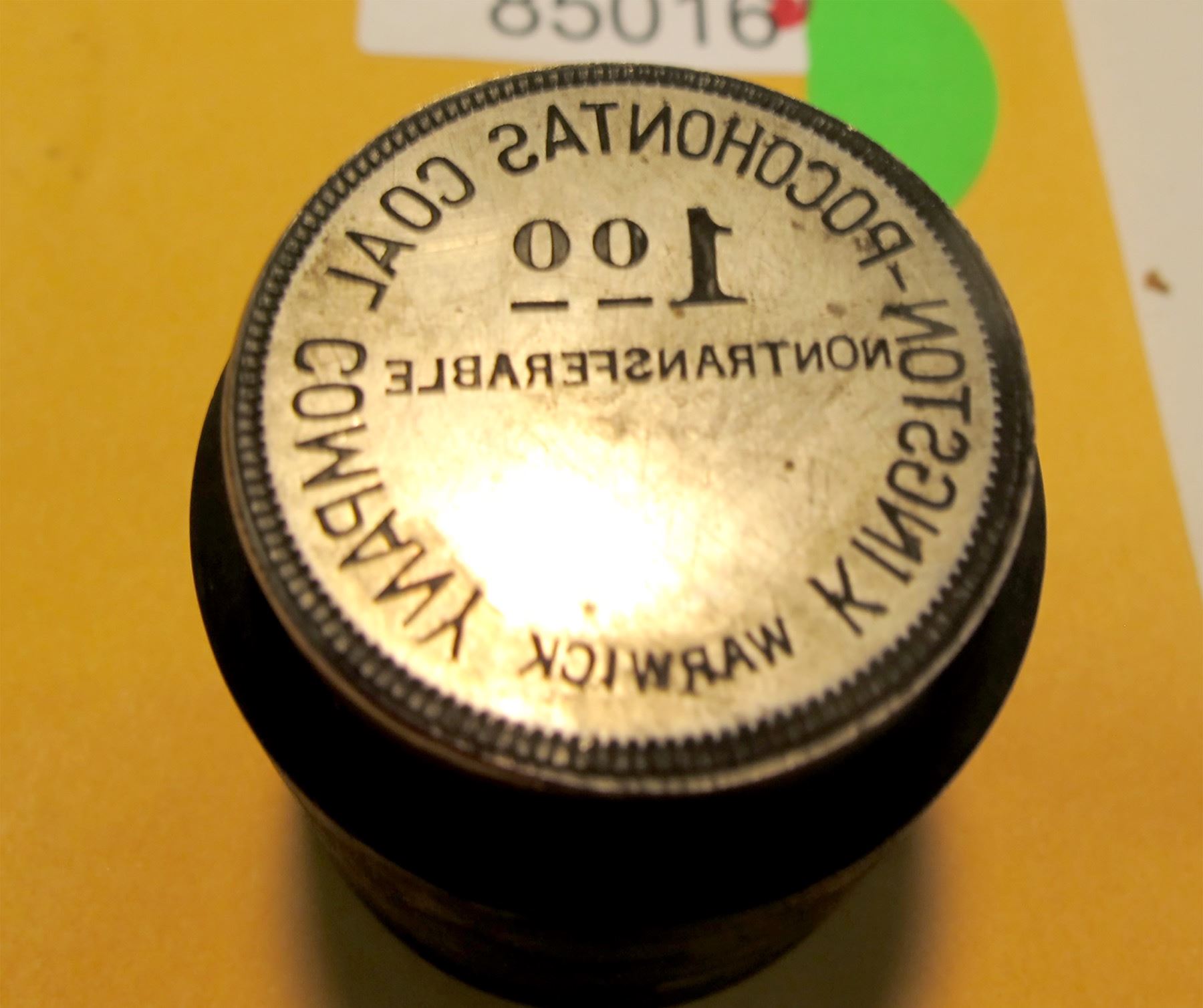 1 token die self identified from Warwick, WA. 30mm: Kingston-Poccohontas Coal. Northwest Territorial Mint Historical Die Collection State: Washington City: Warwick Date: c1903-1950 HWAC# 85016