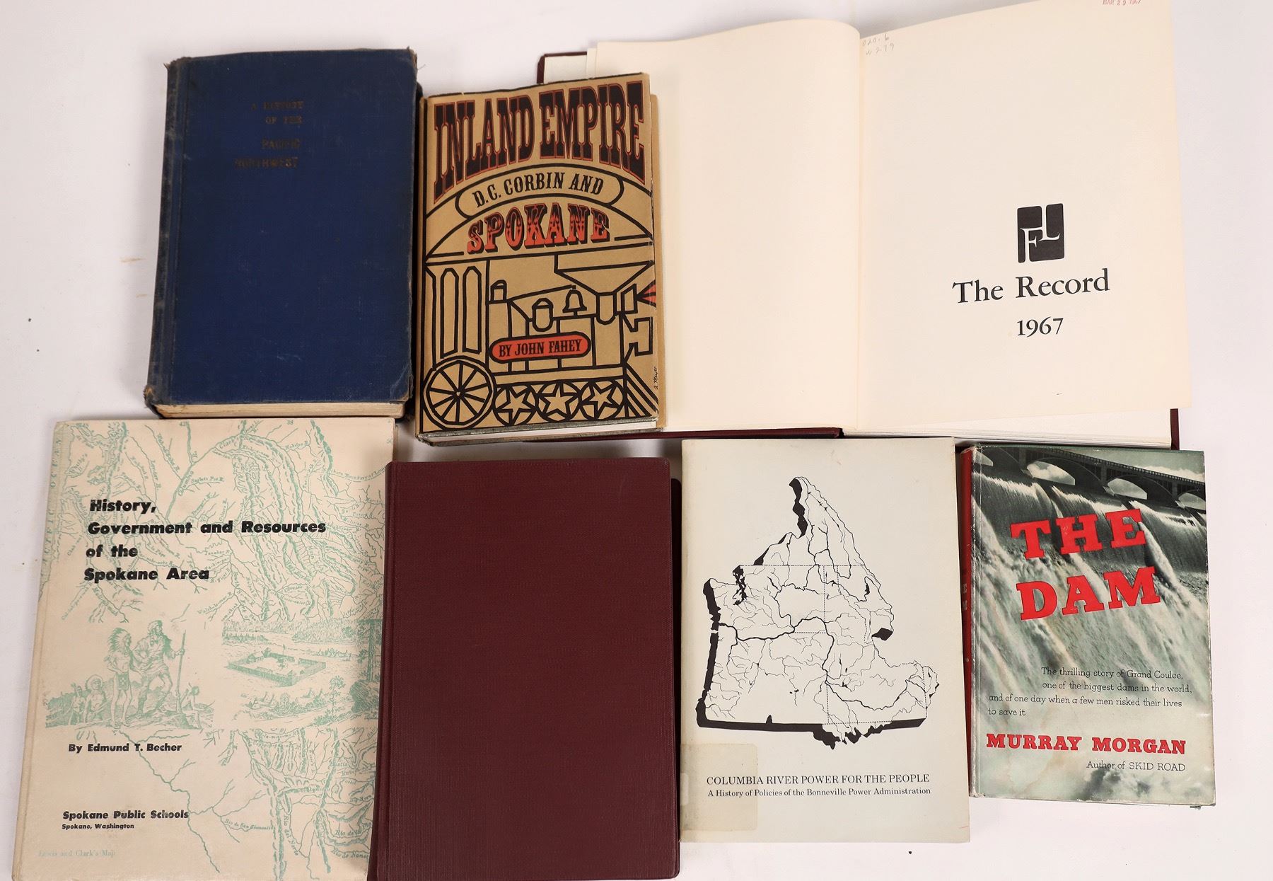 The Record 1956-66, 1967-70, Columbia River Power for the People-dams, wartime production and river photos. The Dam by Morgan-great construction photos of Grand Coulee Dam. History, Government and Resources of the Spokane area by Becher, Inland Empire by Fahey, A History of the Pacific Northwest by Fuller 1941, taped title page. Washington Washington