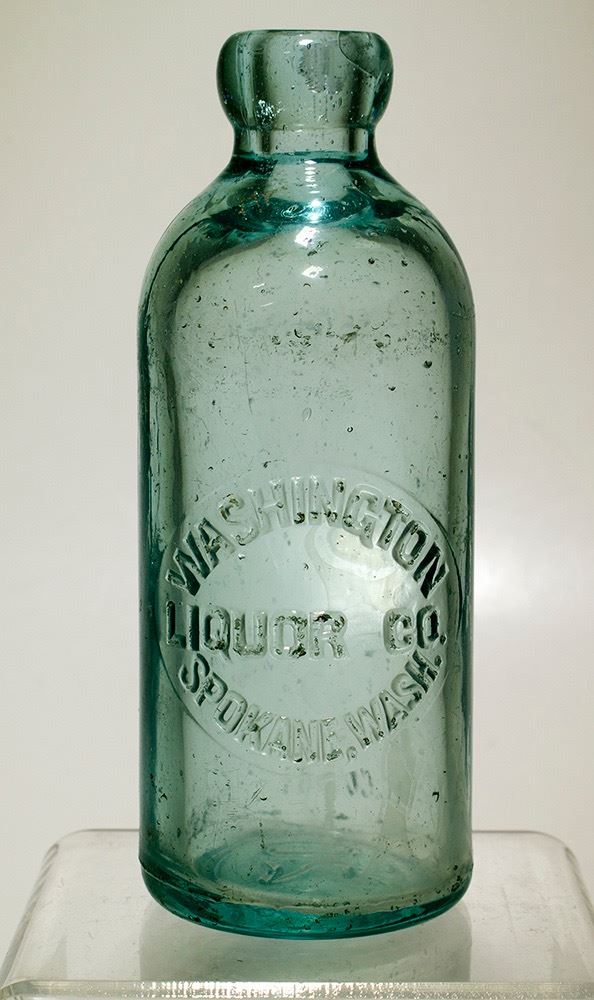 Washington Liquor Company, Spokane Washington Hutch soda bottle aqua soda, a tiny bit of lip roughness on the inside. Not listed in Fowler. Date: Location: Washington HWAC# 47053
