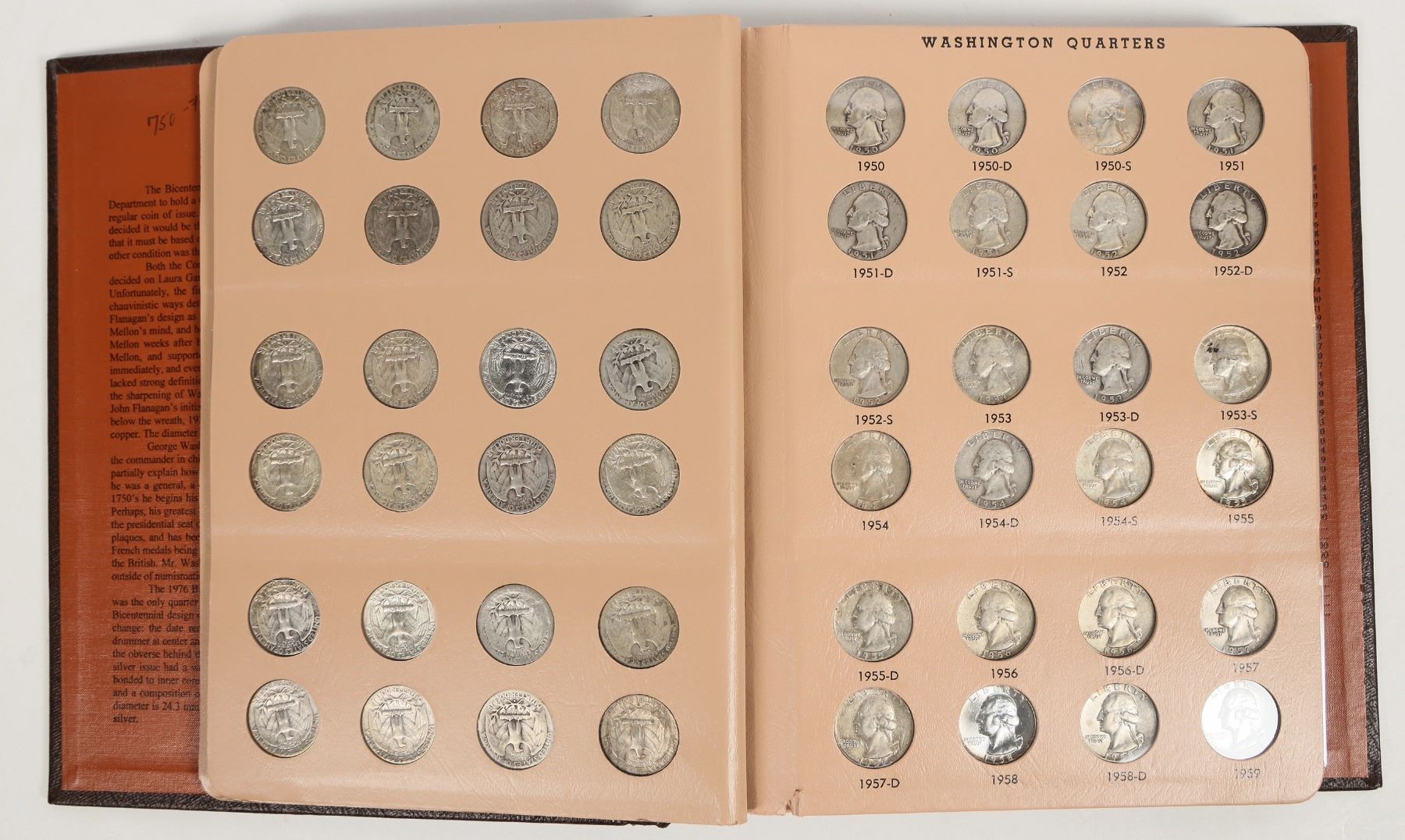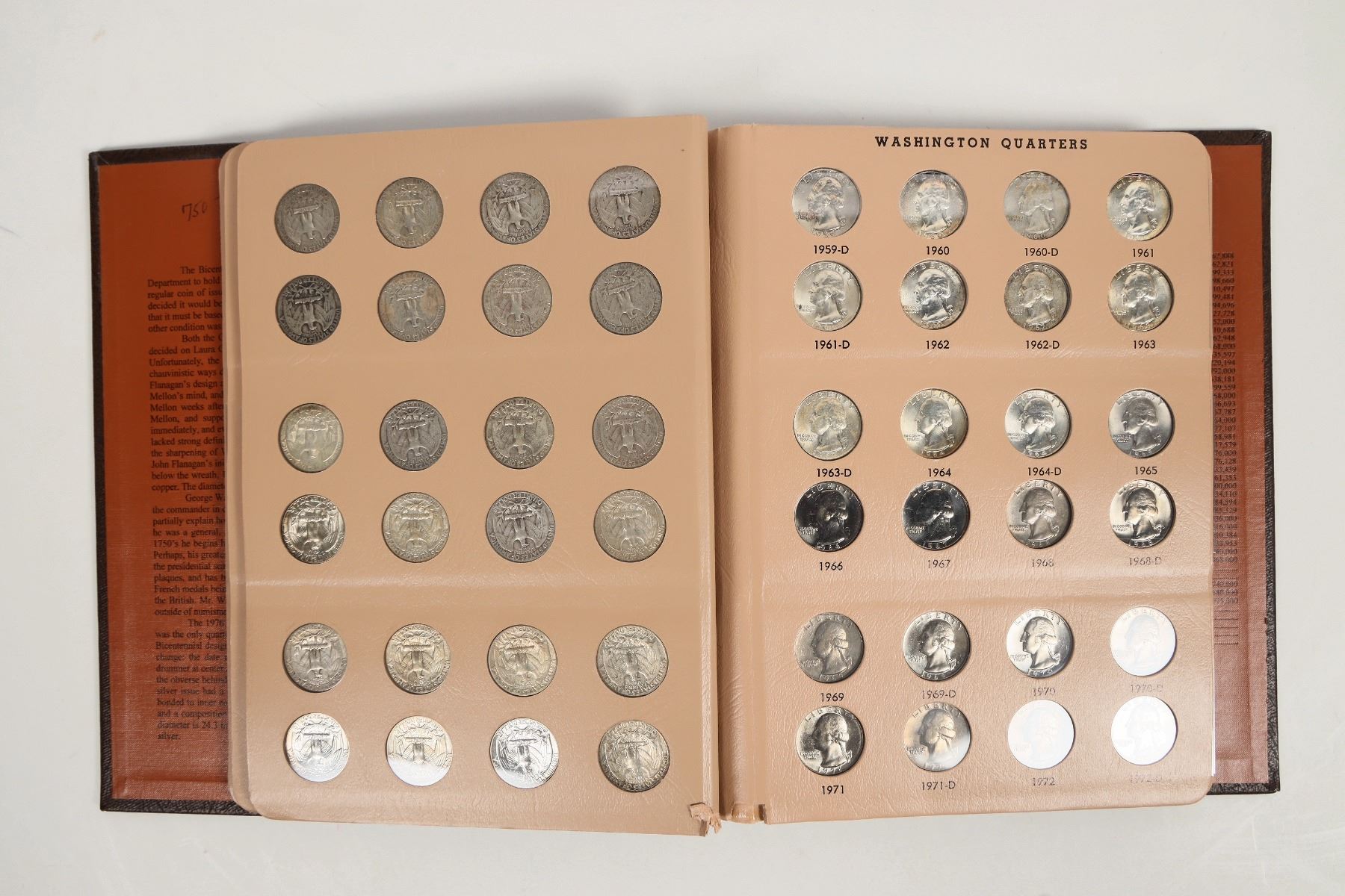 Dansco album #7140 Washington Quarters 1932-1998. Complete set of 83 silver quarters and 63 post-1964 quarters (up to 1998). Early dates circulated, G-EF condition; later dates, many uncirculated and proof. Nice collection.
