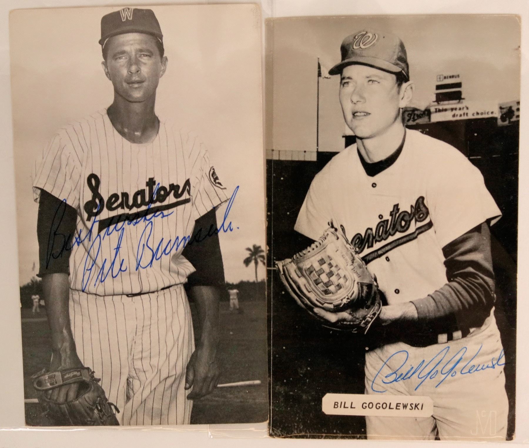 Two autographed black and white photo post cards: Bill Gogolewski and Pete Burnside. Both produced by J.D. McCarthy, 8441 Northfield, Oak Park 37, MICH. No grading service used.