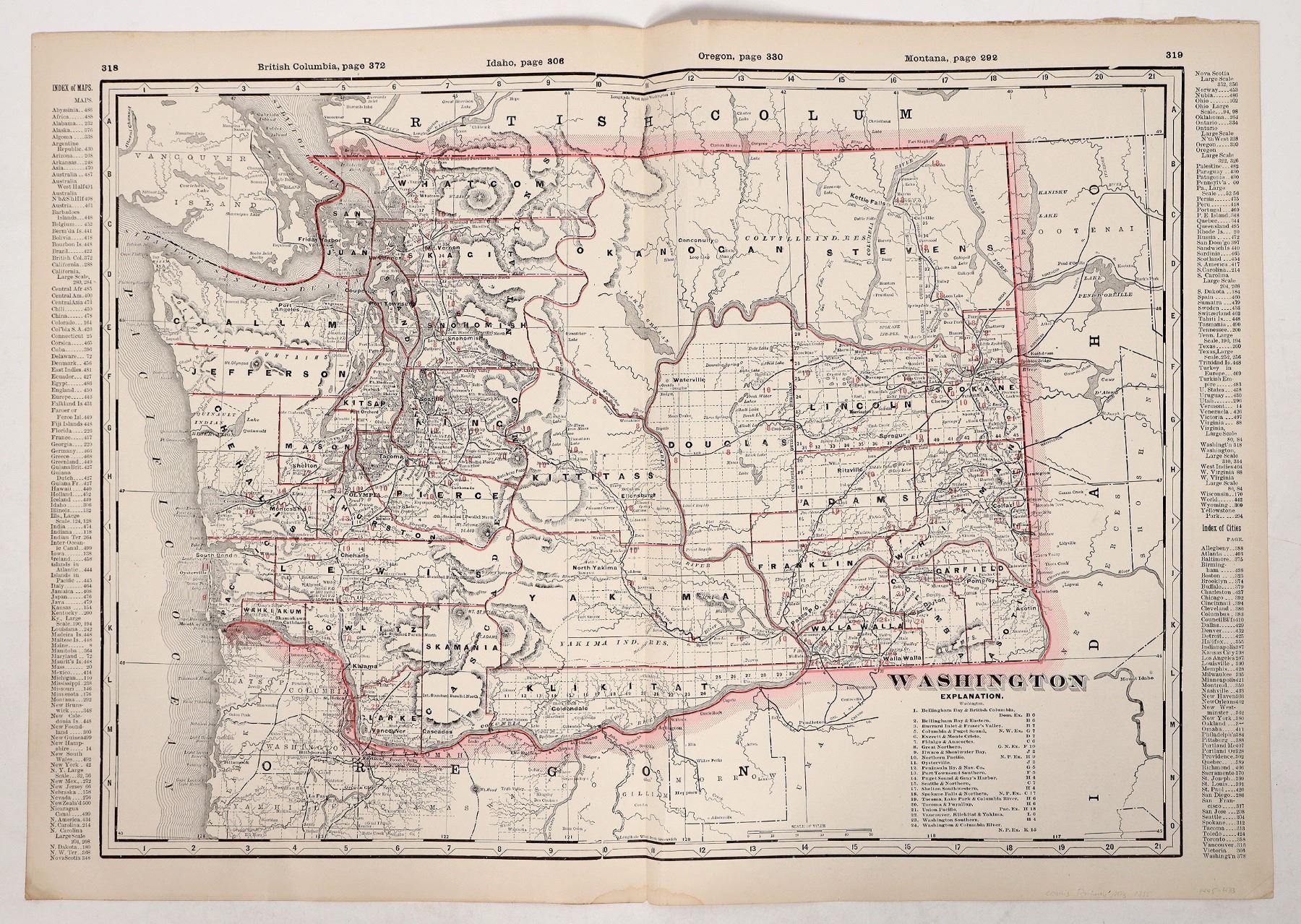 Washington State Counties Railroad Map, c. 1880s-1910s [193205]