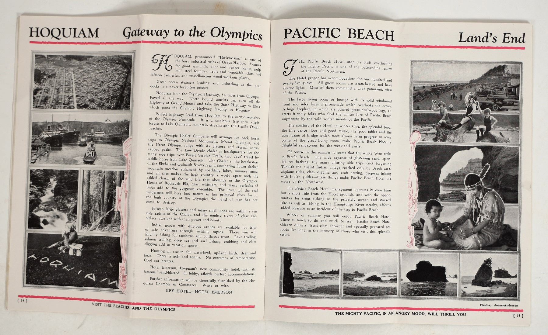 Lot of 14. Postcard w/attached small photo book, 2 magazines in hotels-resorts Seattle Republican magazinebook "Home-seekers Guide"1914, bound collection of "Seattle Civil Seervice Journal", 5 photoso fbldgs-bars and RR construction. warranty deed dated 1880
