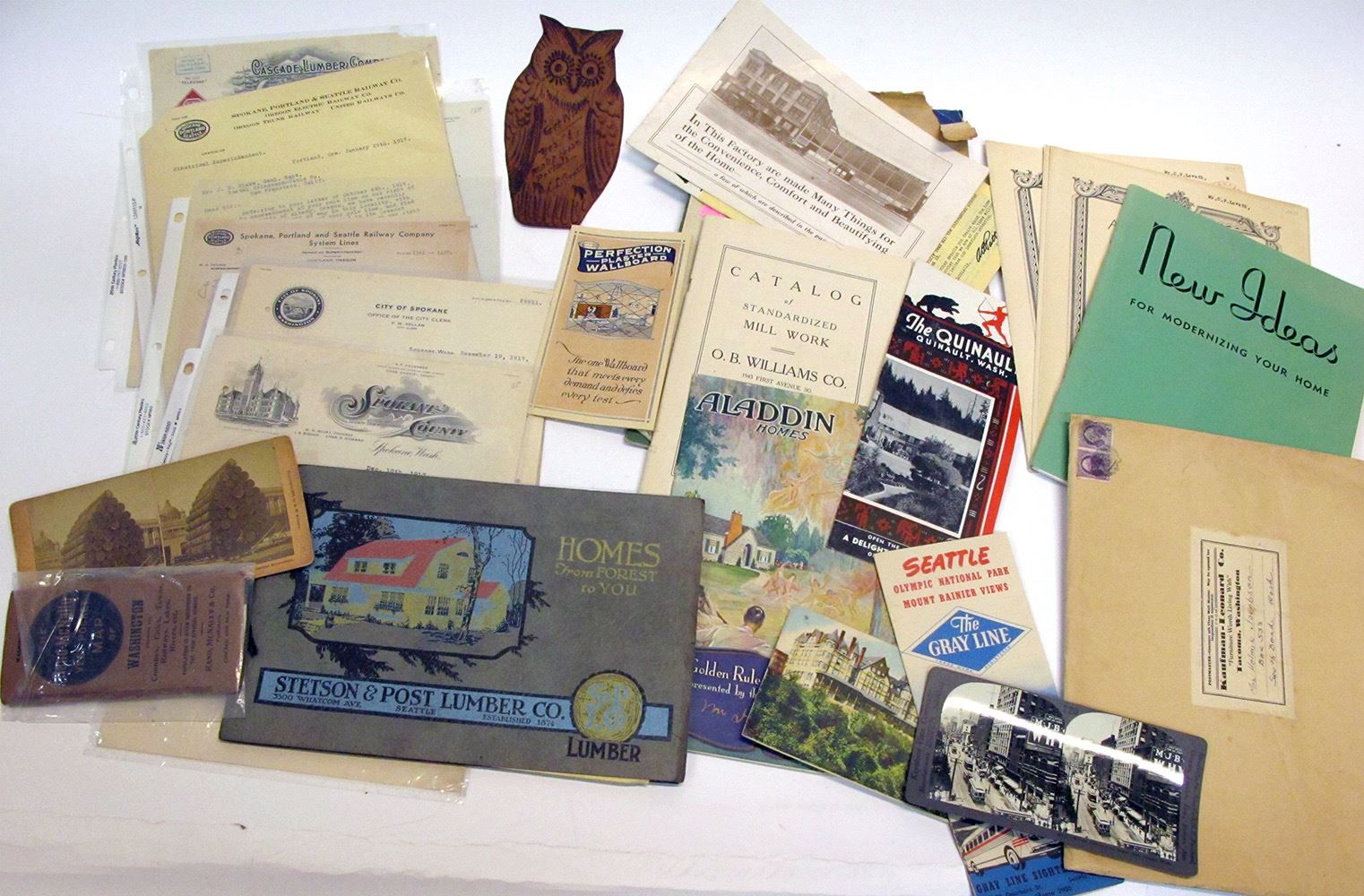 Approx. 25 items including catalogs and ads. for "Aladdin Readi (sic) Cut Homes" this ad has color pictures with listed prices of the day; catalog of illustrated Standardized Mill Work circa 1924; magazine of Instructions for Installing Modern Plumbing Systems from Sears, Roebuck and Co. (black & white photo's); Magazine of "New Ideas for Modernizing Your Home" from Better Homes & Gardens, copyrighted 1935 with black & white photo's. Date: Location: Washington HWAC# 55124