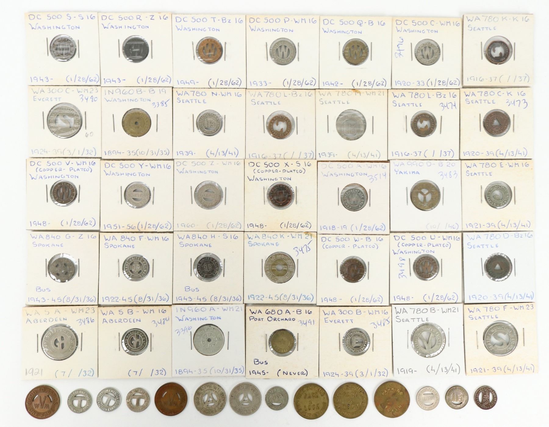 Group of 48 transportation tokens from various Washington companies. See photo for details.