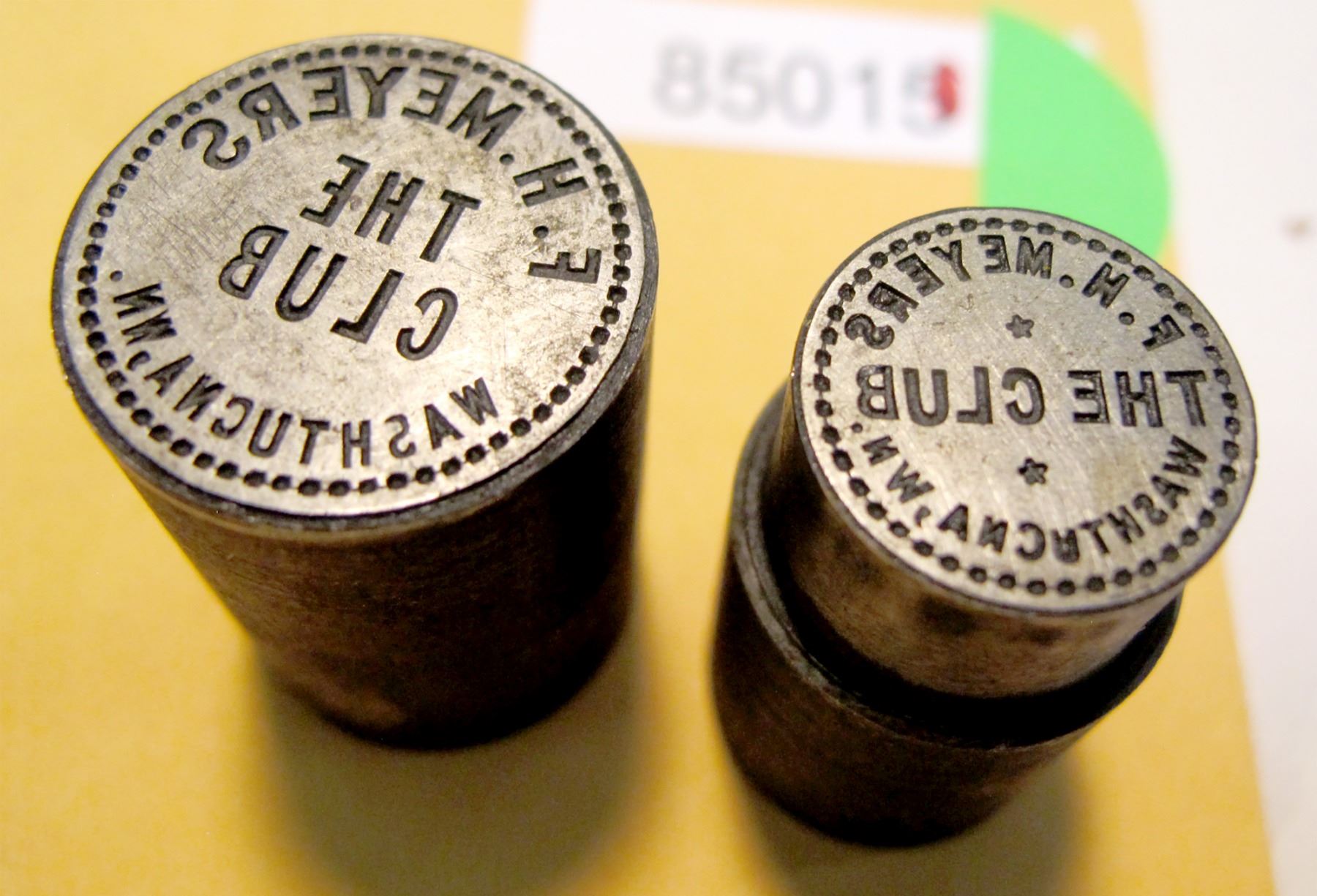 2 token dies self identified from Washtugan, WA. 16mm and 24mm: FH Meyers The Club. Northwest Territorial Mint Historical Die Collection