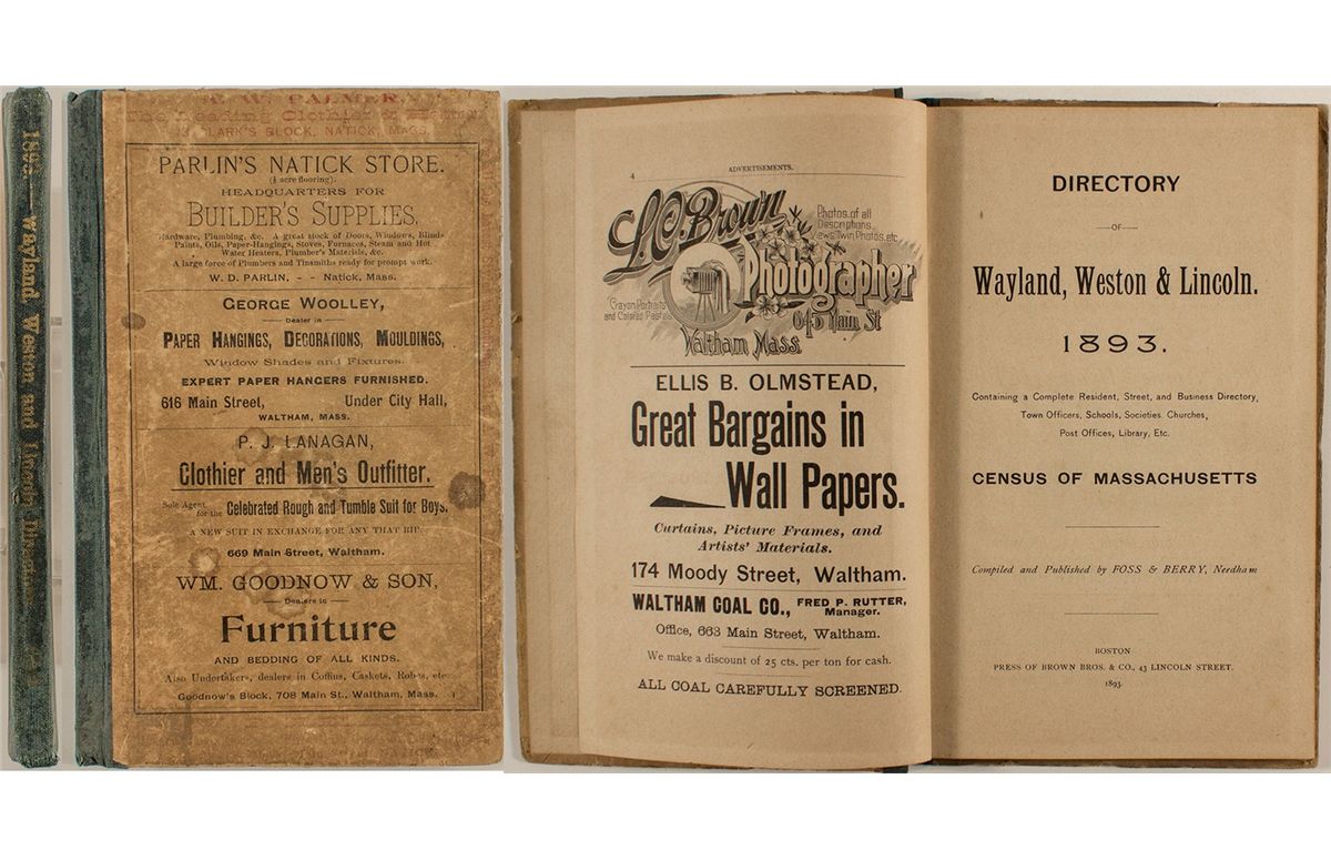 Wayland, Weston, and Lincoln, MA Directory, 1893
