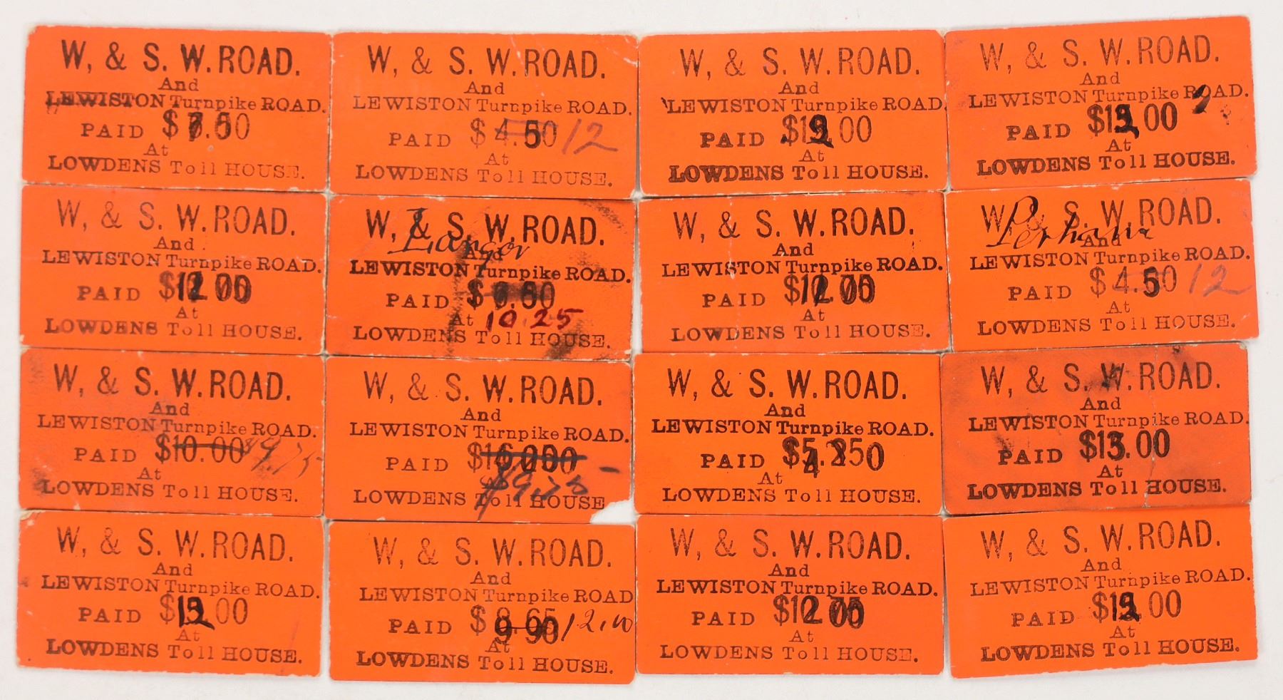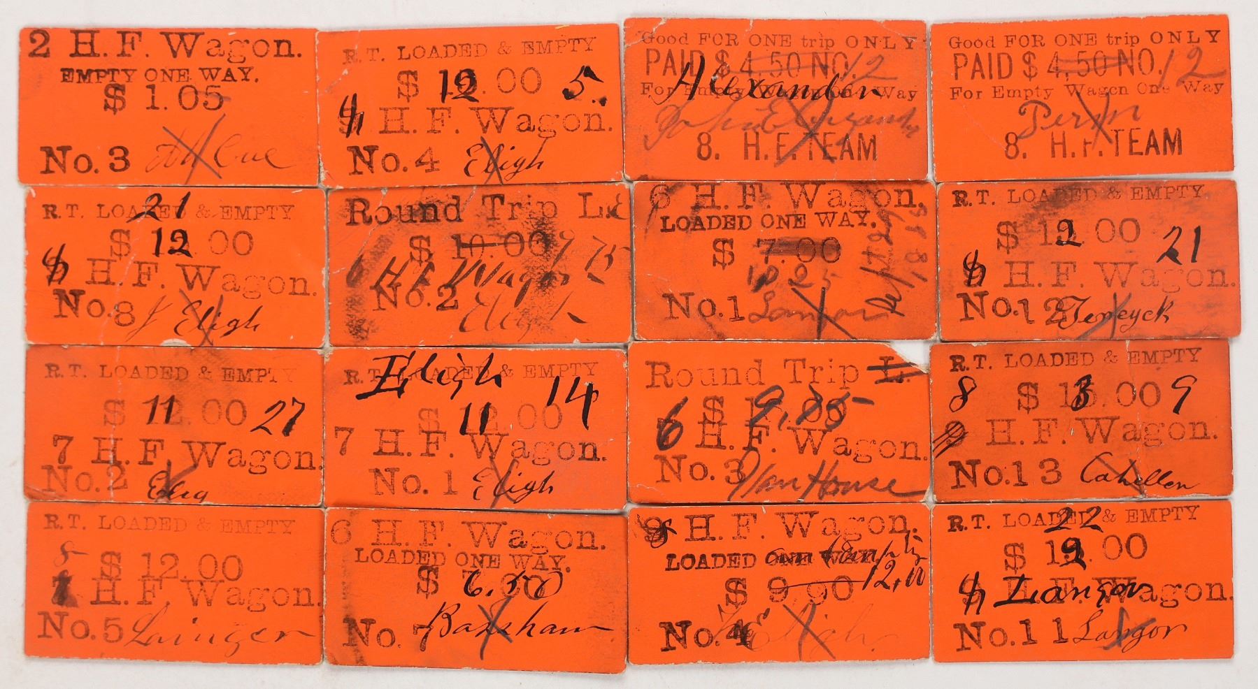 Lot of 13 Tickets. Varying Pricing from $1 - $12. Complete Set. Lowdens Toll House. Weaverville, & Shasta Wagon Road. Orange Tickets.
