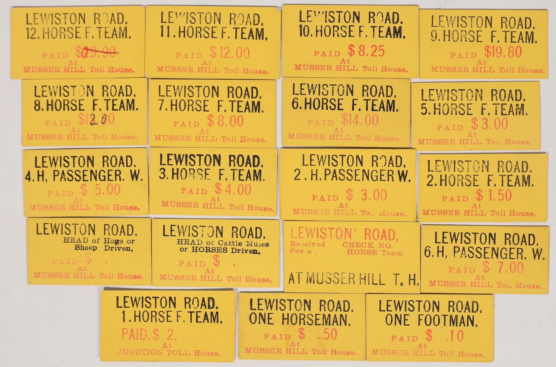 Yellow Tickets. Various fares .10-$14. Approx 15+. Good Condition. Musser Hill Toll House and Lewiston Road.