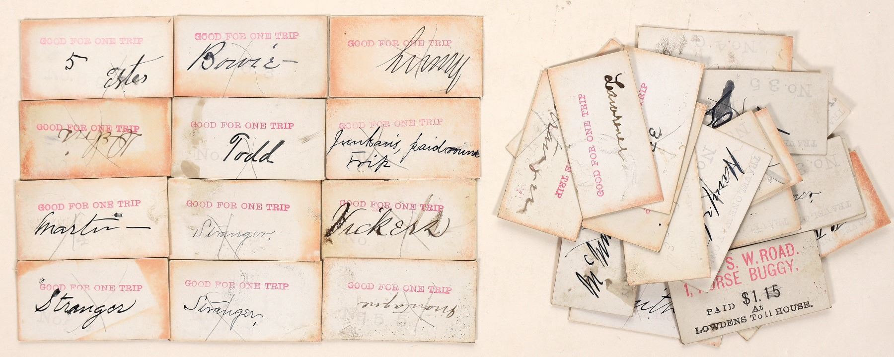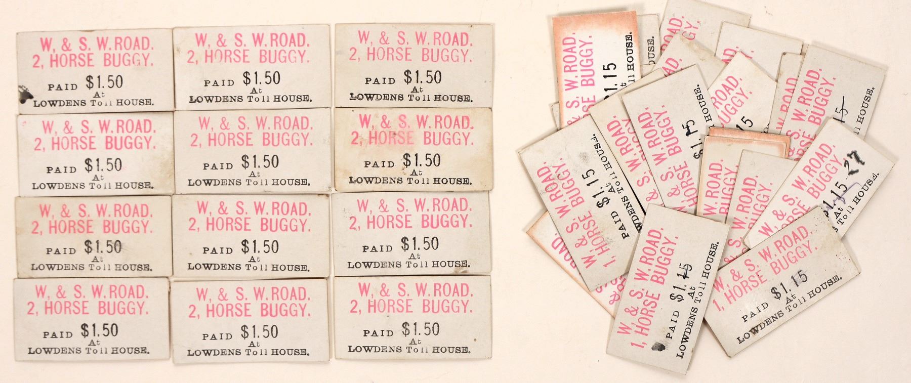 Lot of 15+: White Tickets. Good Condition. W, & S, W Road. Lowdens Toll House. Horse Buggy. 15+.
