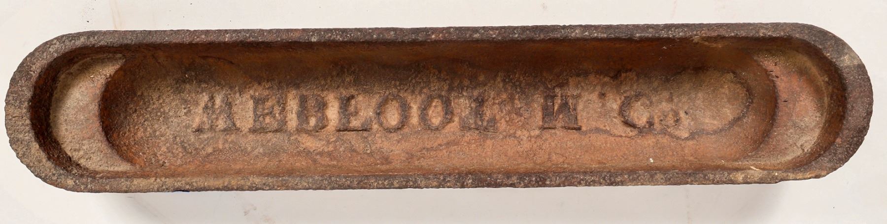 Internally embossed ingot mold for the webfoot m co. It is 33" x 6" x 3.5" deep. Held approx. 1000-1500oz silver bars. Bullion City/ Railroad District south of Carlin. Lead Silver bullion mold. Identical to those used at Cerro Gordo in the 1870s. We've had the certificate from Webfoot Elko County previously.