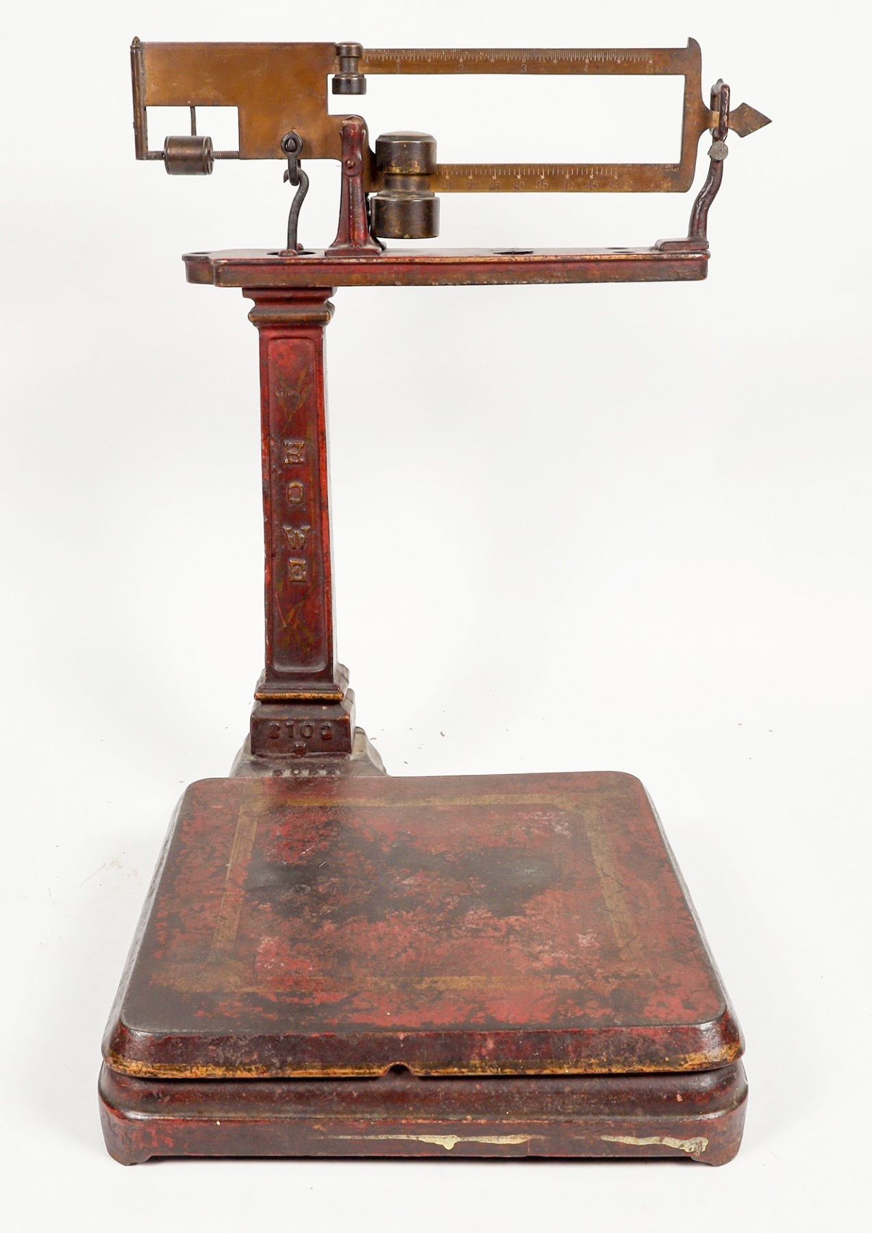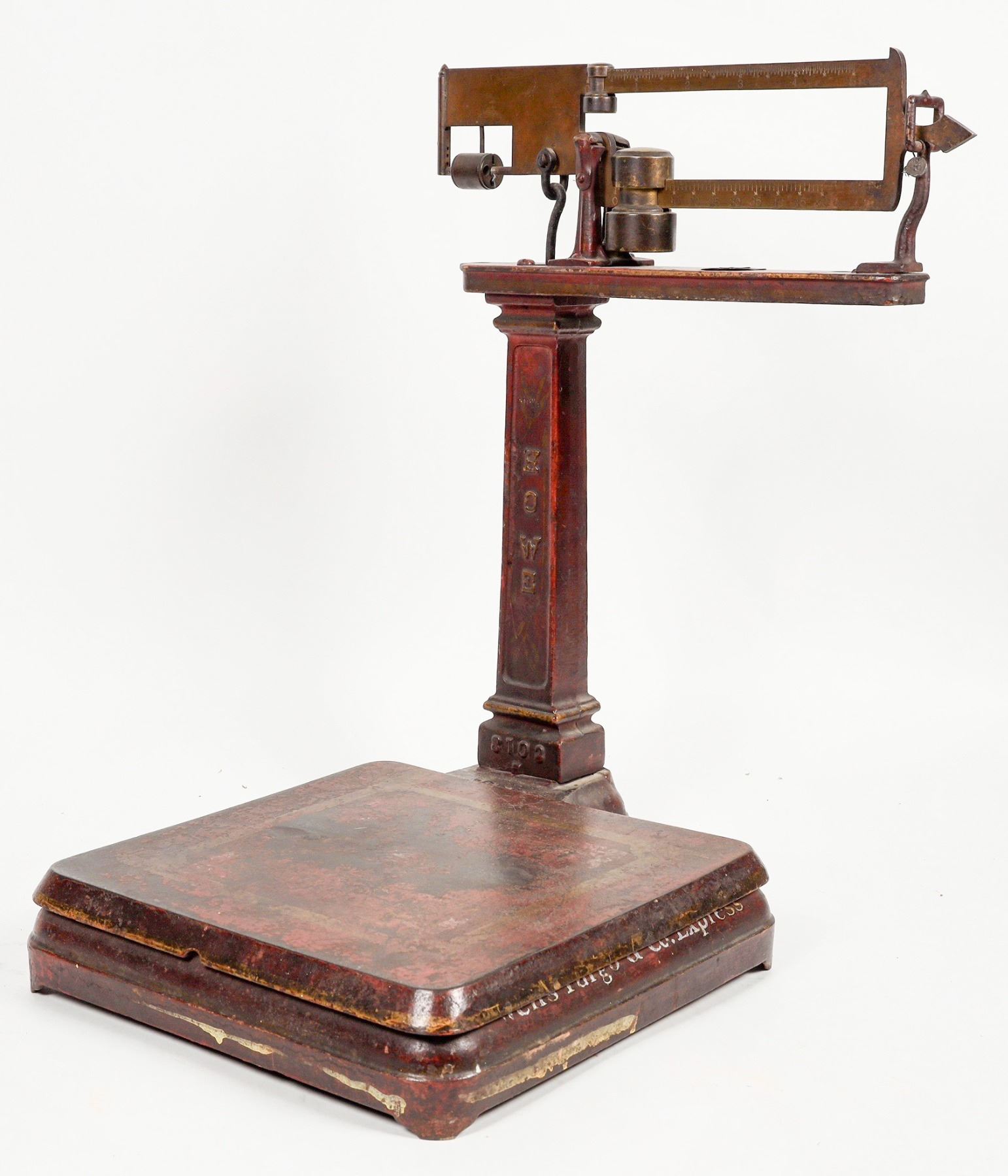 Howe manufactured scale. In Wells Fargo Co property by Bartz listed as # 55 Howe. Marked on 2 sides Wells Fargo & Company Express. The post has original decal. Overall size base 18.5" height is 22" Nevada California origin. This one has all the original paint and markings which is uncommon for these.