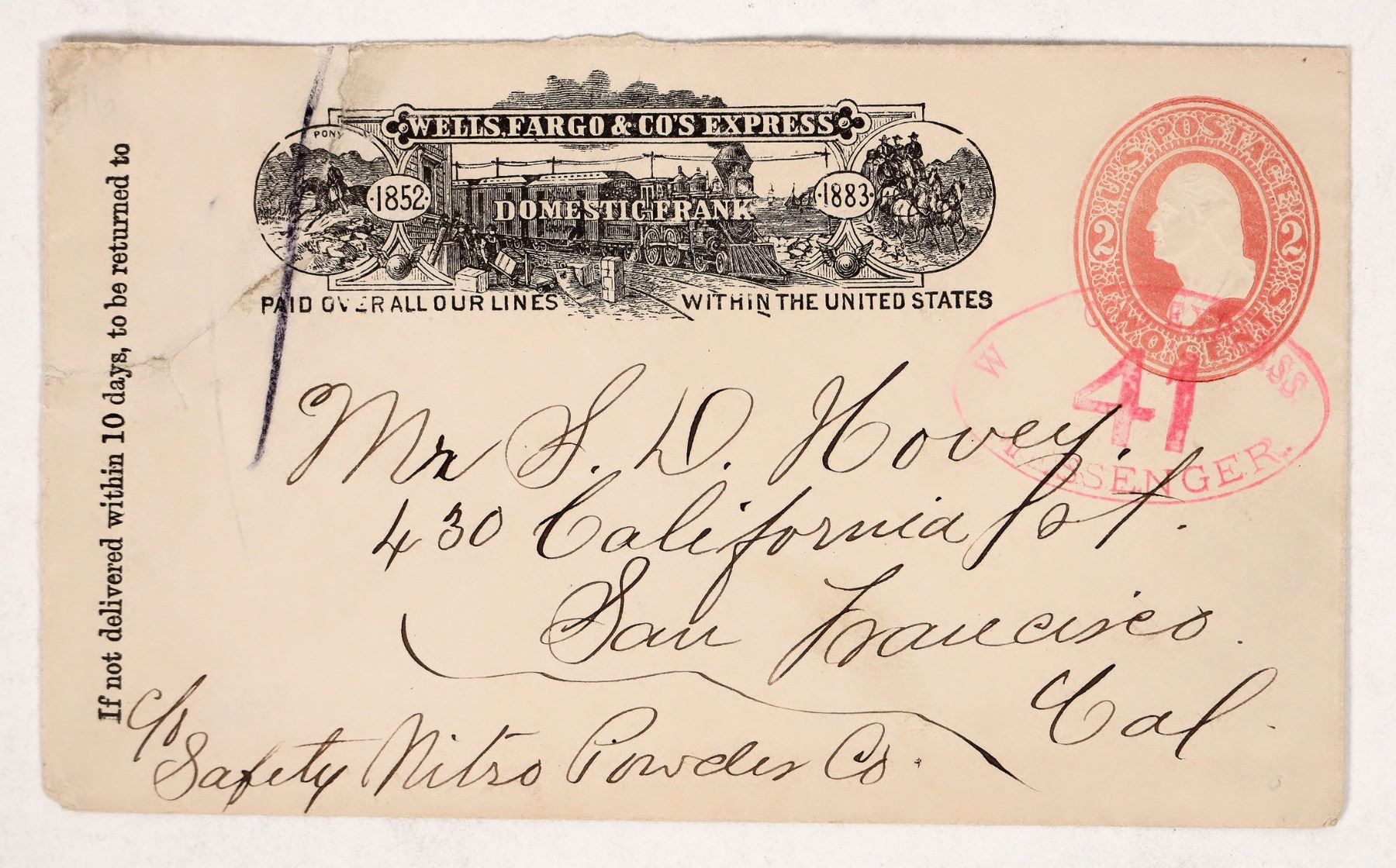1884 Wells Fargo & Co's Express franked cover to Nitro Safety Powder.